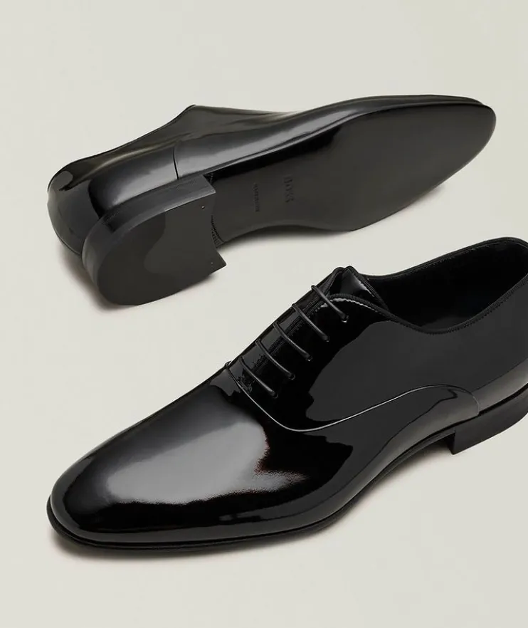 - A dapper evening style, these sophisticated oxfords are expertly crafted from patent leather for a statement finish.