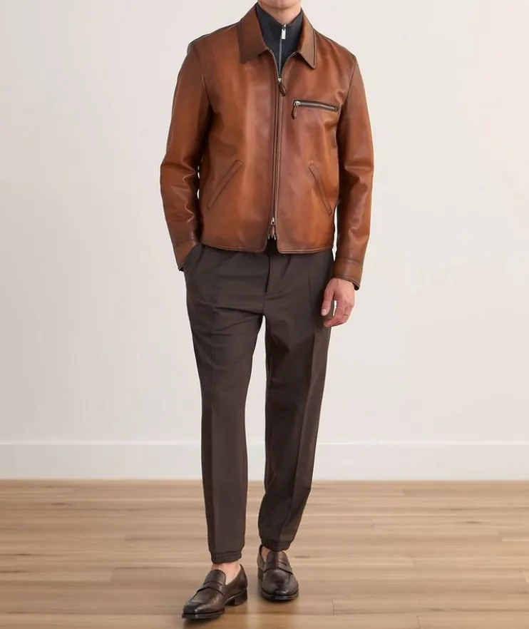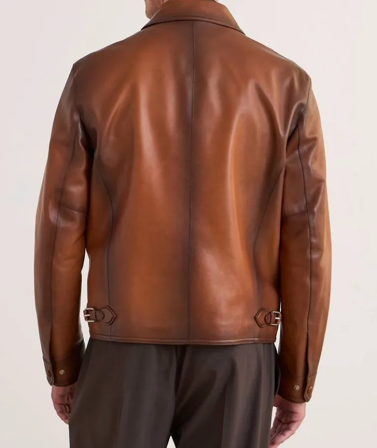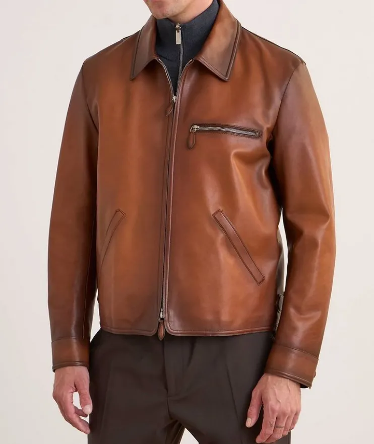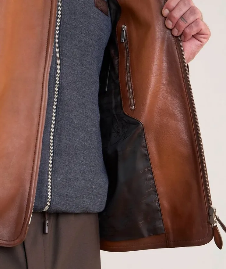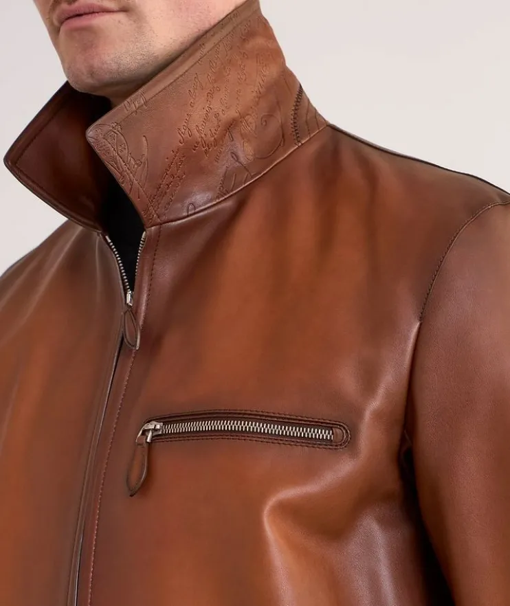 - Crafted in luxurious Vitello Fiore leather, this distinguished calfskin jacket boasts a signature Scritto lining and an overall beautiful quality that lies in its natural hand and visual character, a tribute to the brand’s unique leathers and exquisite details.