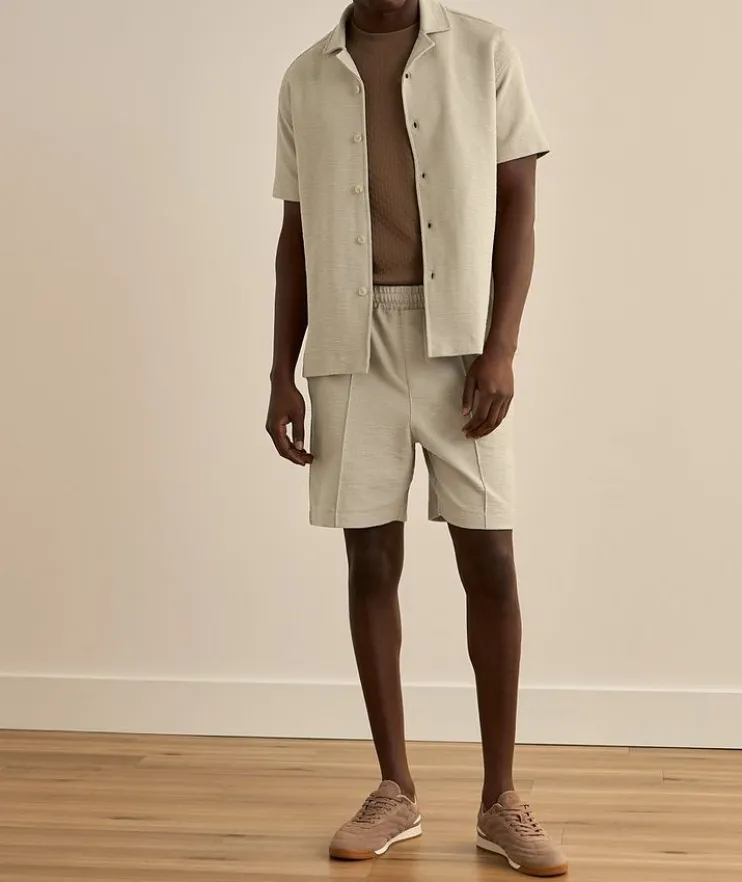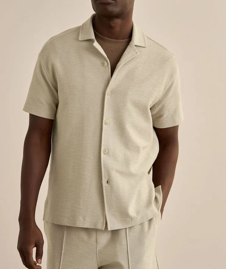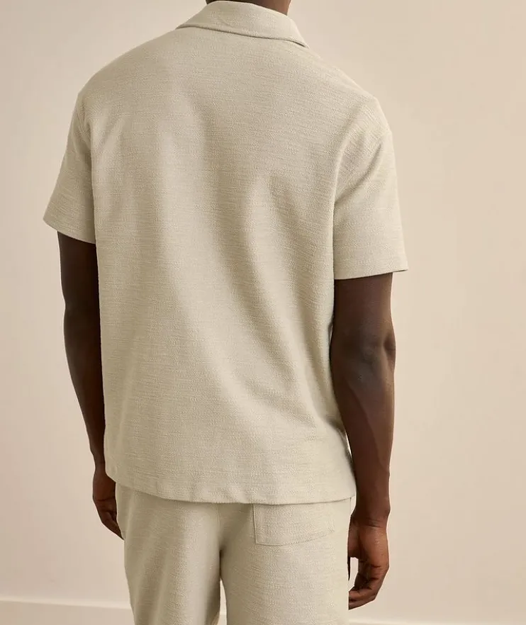 - A warm weather essential, this on-trend camp shirt is crafted from textured cotton with tonal button details.