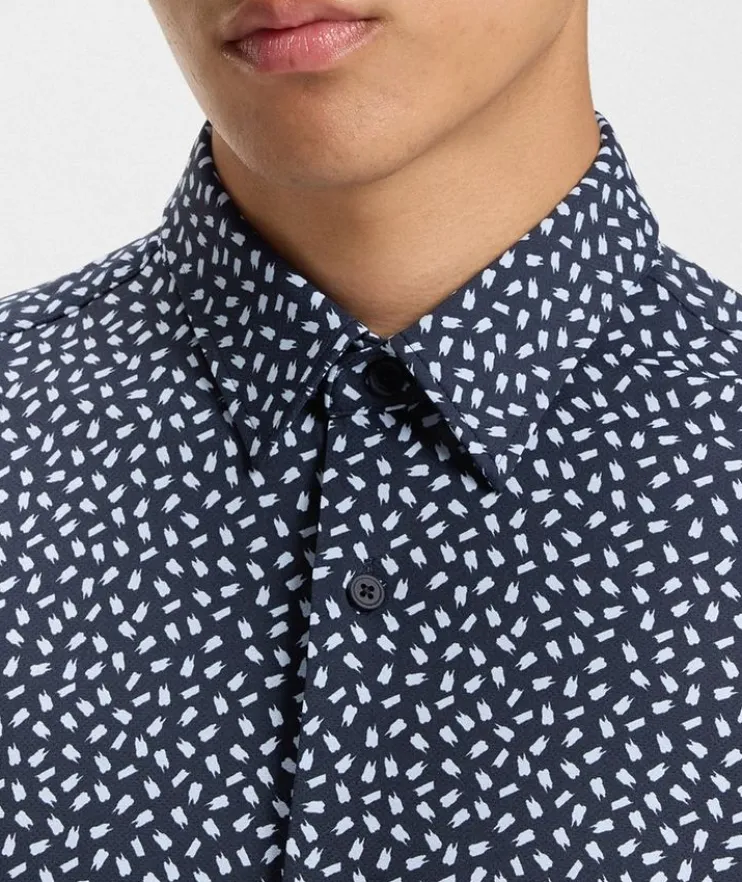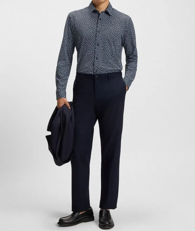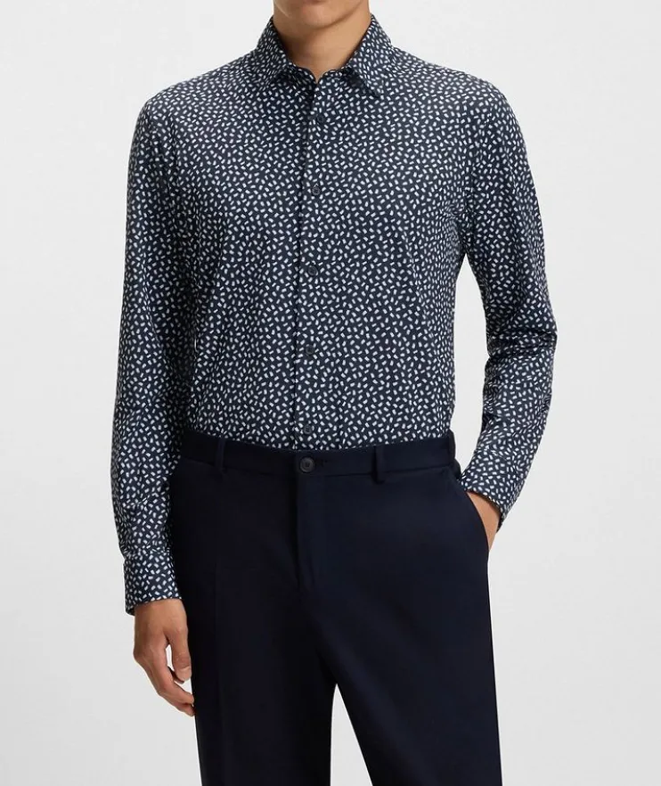 - Elevate your wardrobe with this exquisitely crafted slim-fit shirt featuring an abstract dot print that commands attention whilst providing remarkable comfort and flexibility. The performance-stretch fabric moves effortlessly with your body, ensuring you maintain a refined silhouette throughout your most distinguished engagements. Designed effective moisture management and excellent breathability, which keeps you fresh all day long.