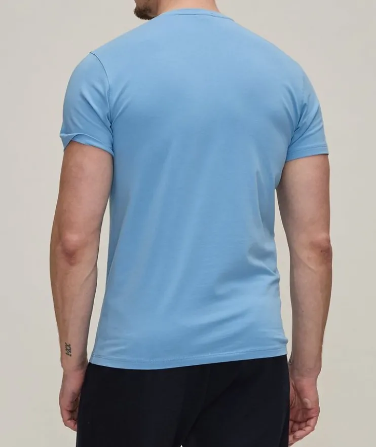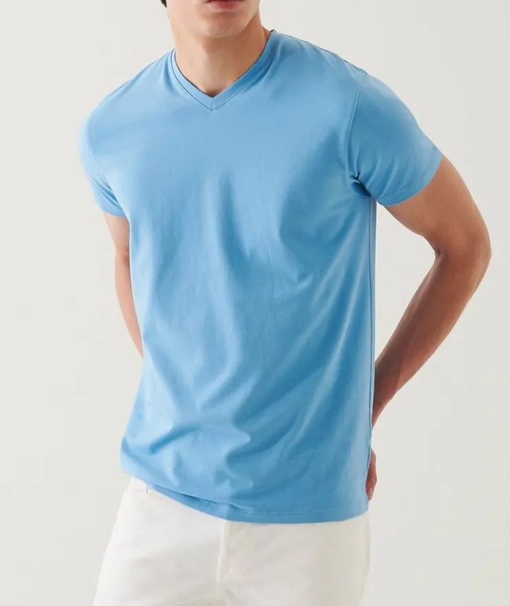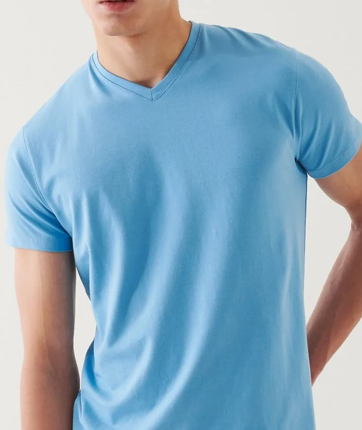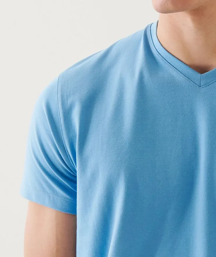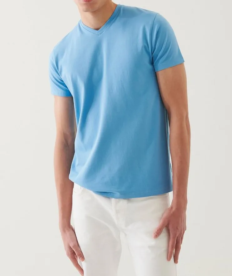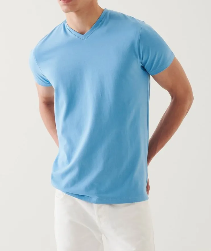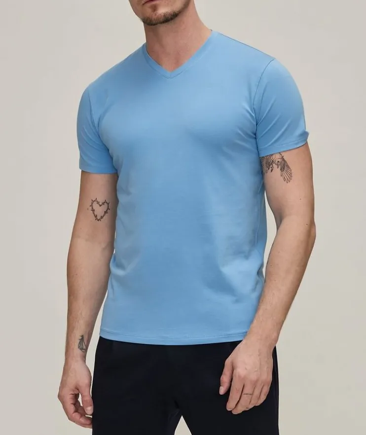 - When you combine the finest cotton with a touch of stretch you get superior fit, in addition to softness and drape you get this PATRICK ASSARAF v-neck t-shirt. This could be the most flattering t-shirt you ever put on.