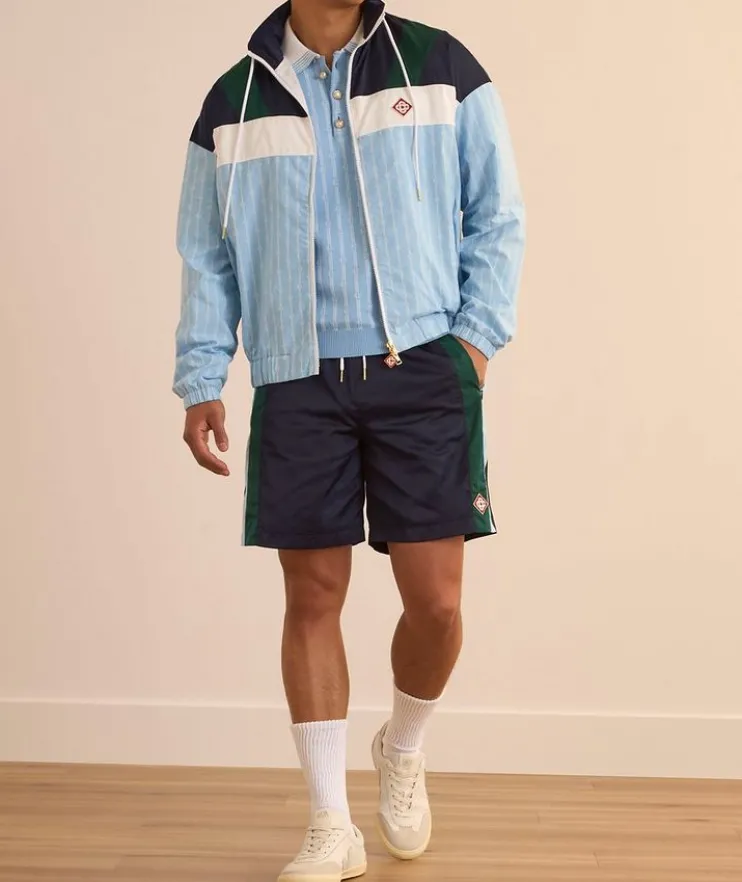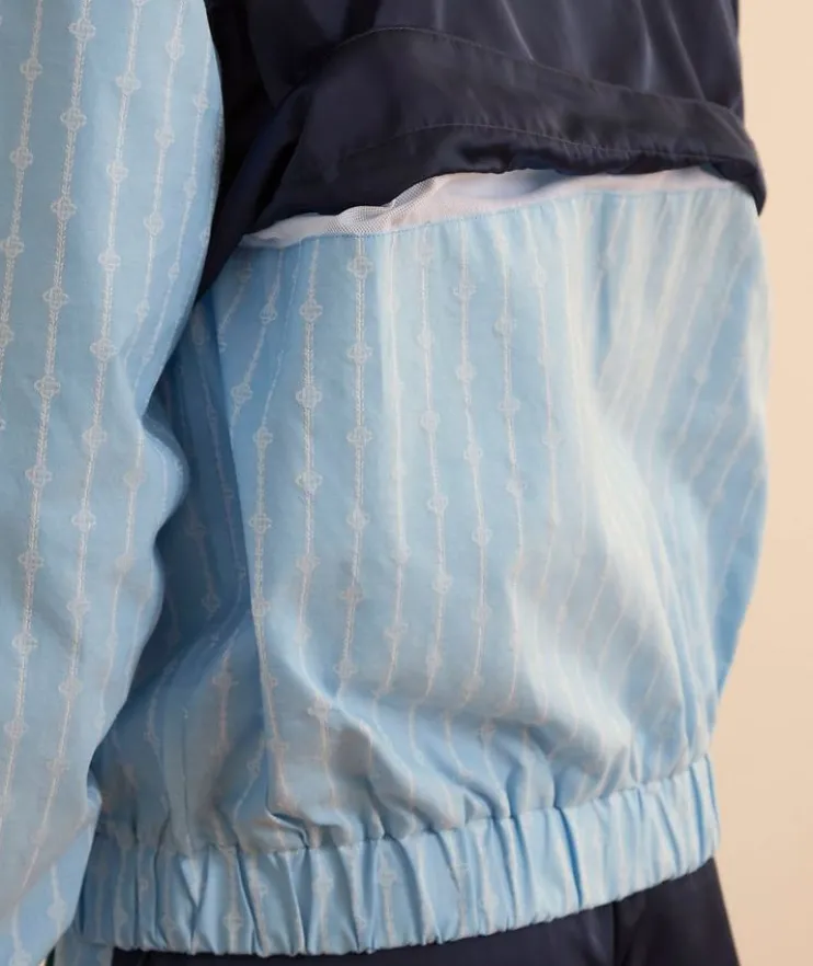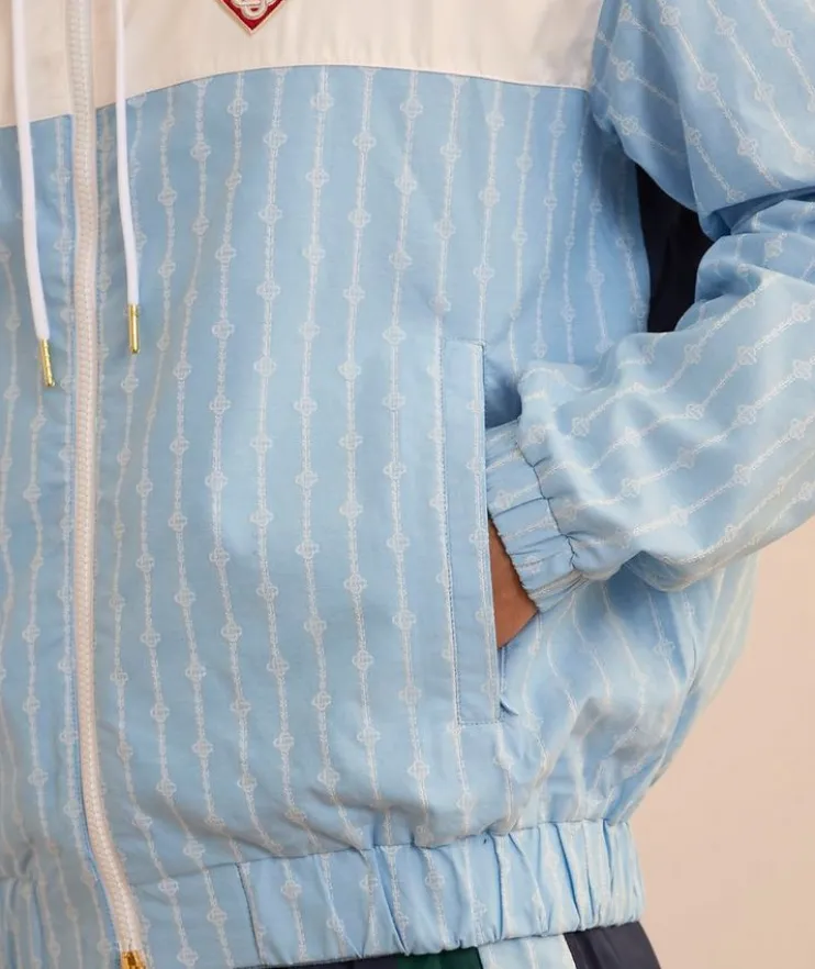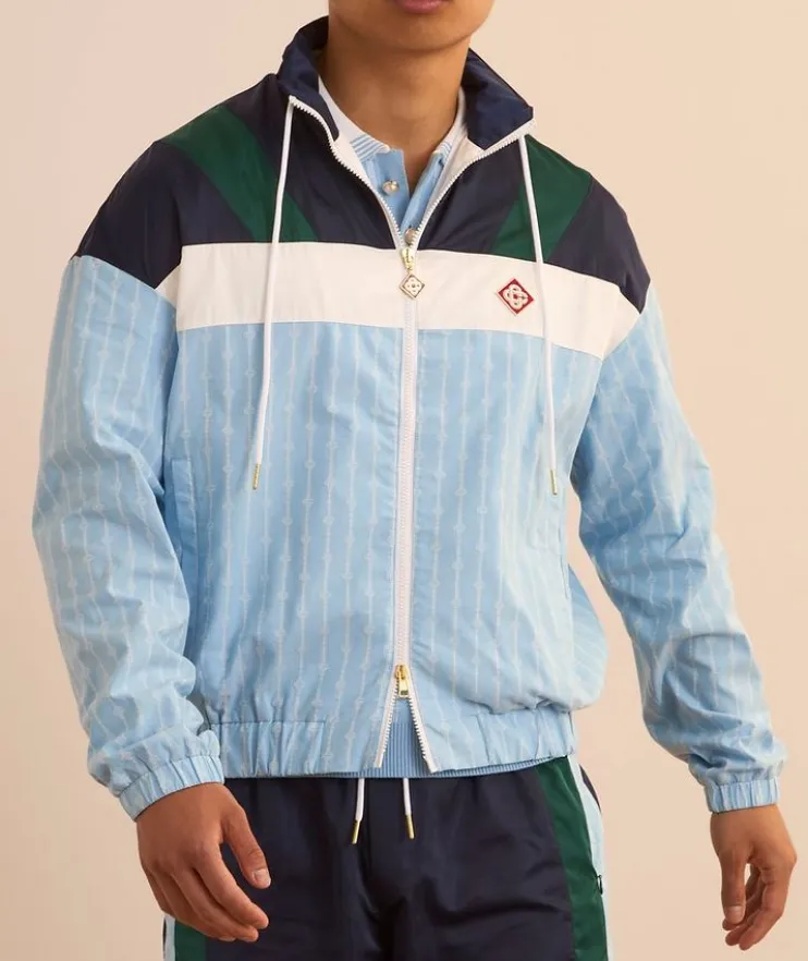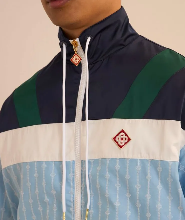 - Taking a cue from traditional sportswear design, this track jacket is crafted from technical fabric with logo detailing and a contrasting colourblocked panel. Finished with a rain shield and vent panel for added comfort.