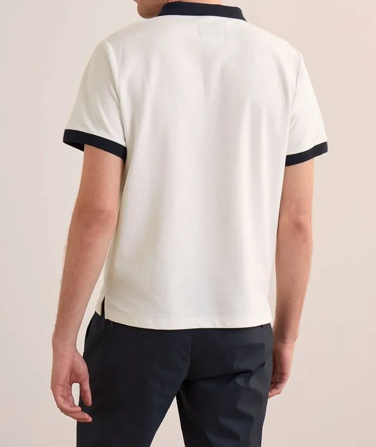 - Upgrade your office attire and off-duty looks with this sport-inspired silhouette. Fashioned in a lightweight waffle-like piqué knit for a casual feel, this elevated polo with two-toned sleeves boasts a classic shirt collar, three-button placket and split hems.
