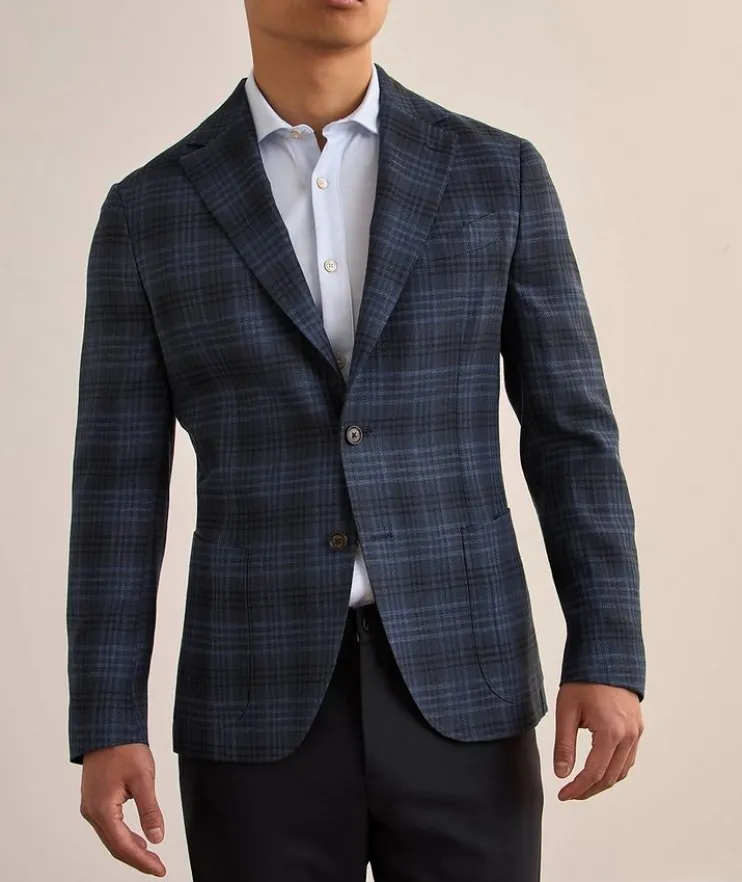- Featuring a tonal plaid pattern that exudes timeless style, this single-breasted sport jacket elevates any ensemble whether it be casual or for the office. Finished in a breathable blend of linen, wool and silk with subtle stretch.