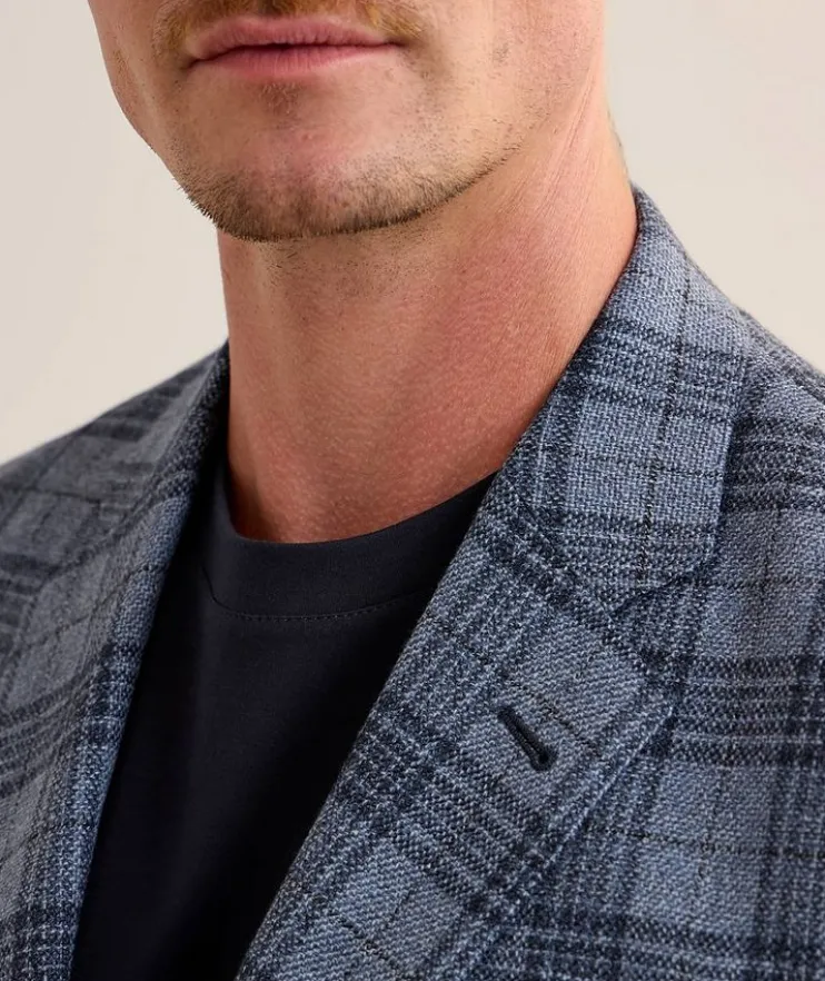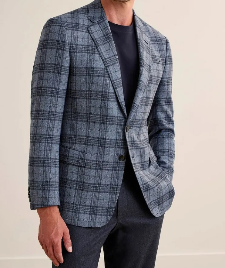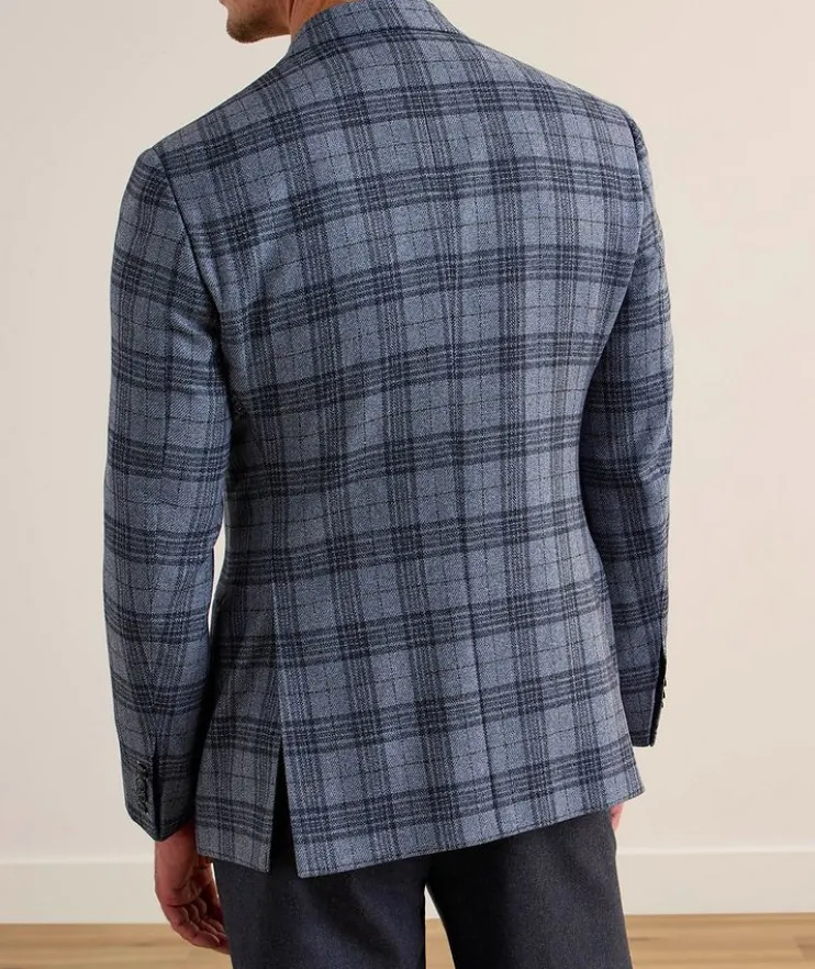 Expertly crafted in Italy from a luxurious virgin wool and cashmere blend, this soft tailored sport jacket is decorated with a classic notched lapel, two-button silhouette and allover plaid finish.