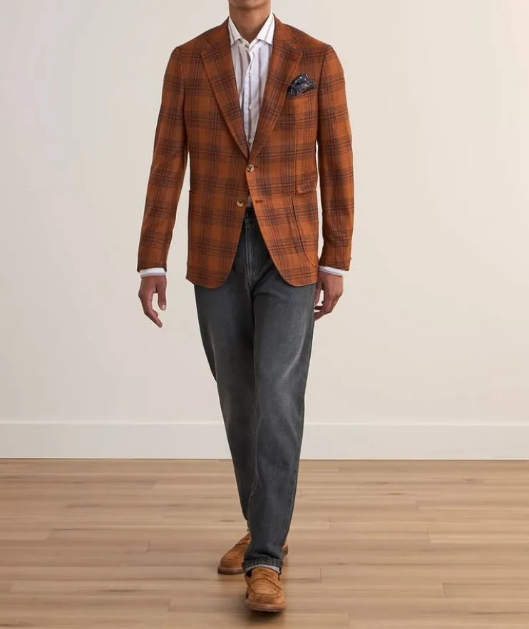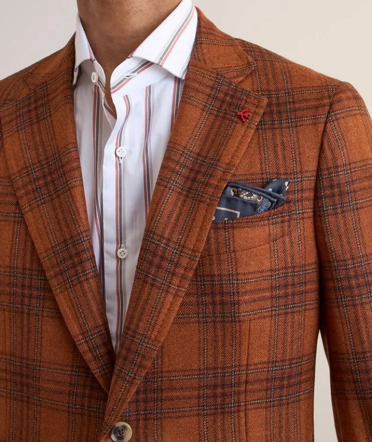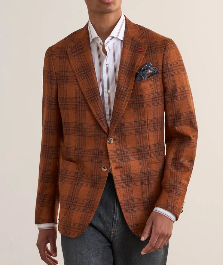 Radiating classic charm and sophistication, this soft tailored sport jacket is topped with an allover plaid motif and thoughtfully crafted with Italian wool and silk blend.