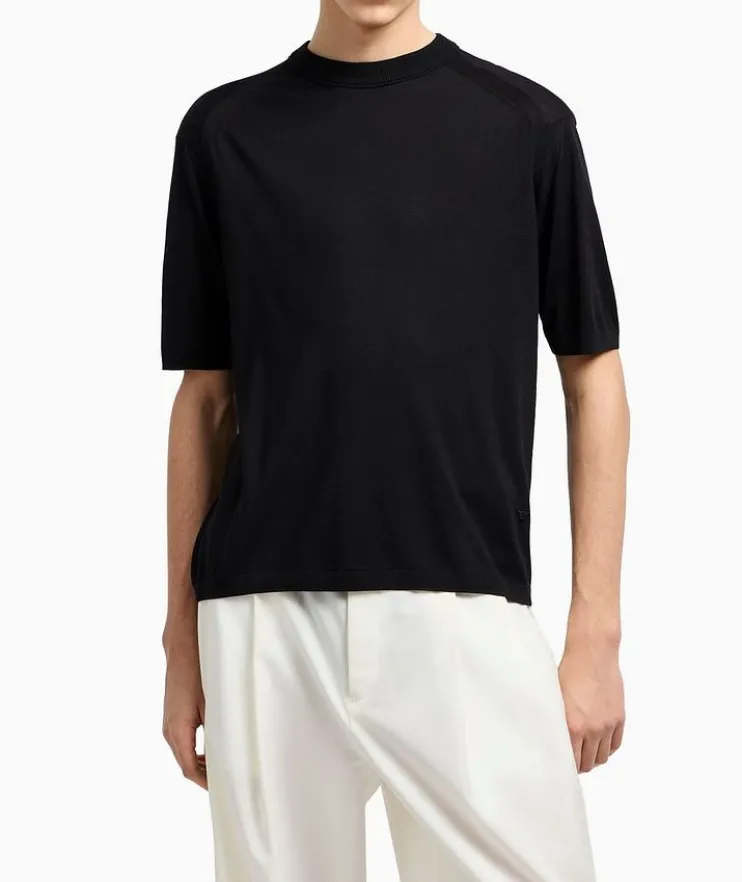 - Add personality and prestige to your dress code with this casual crewneck sweater crafted from a luxurious Lyocell, cotton and silk blend in a short-sleeved silhouette.