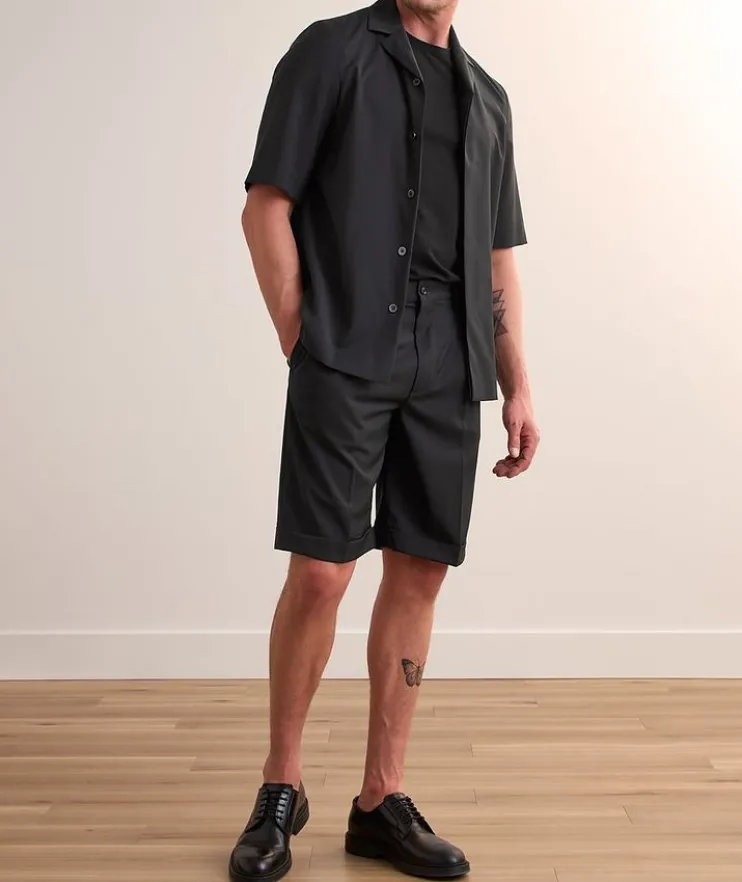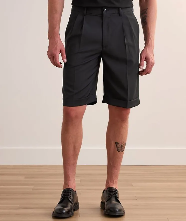 - Made of lightweight tropical wool for comfort and timeless elegance, these shorts feature a minimalist design. Double-pleated, with a center crease and belt loops, this design offers a polished, clean appearance.