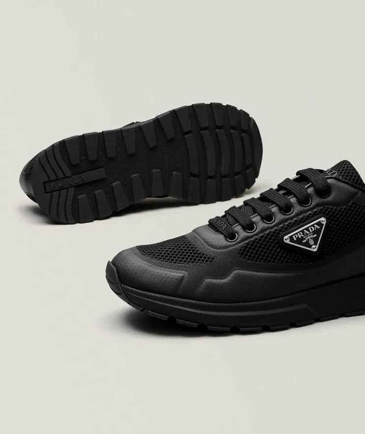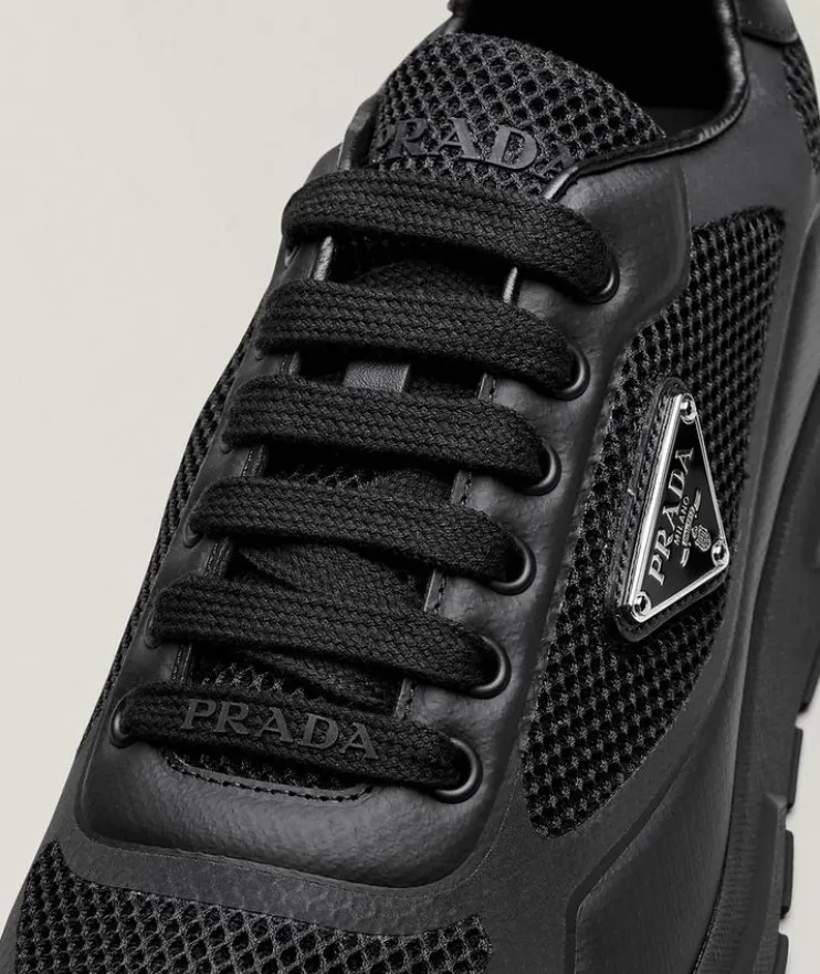 - Enameled metal triangle logo on the upper and embossed Prada Milano logo on the tongue