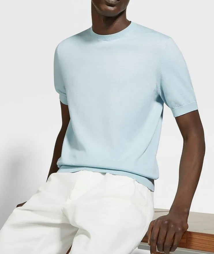 - Superior materials make all the difference in this short-sleeve t-shirt finely knit is luxuriously soft, resilient, and breathable cotton. This elevated essential is finished off with the classic ribbed trim.