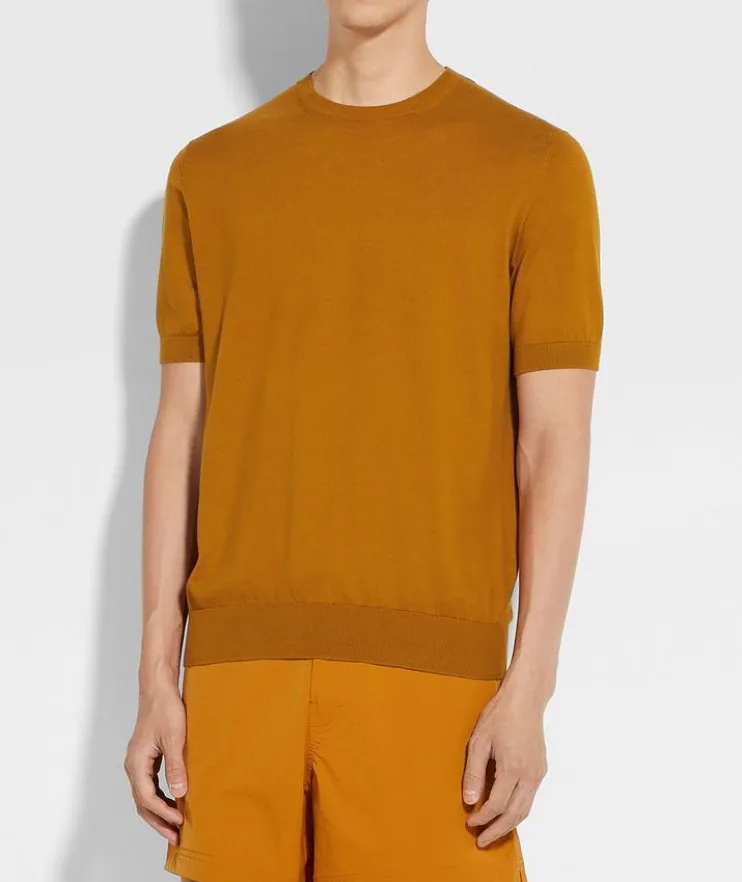 - Superior materials make all the difference in this short-sleeve t-shirt finely knit is luxuriously soft, resilient, and breathable cotton. This elevated essential is finished off with the classic ribbed trim.