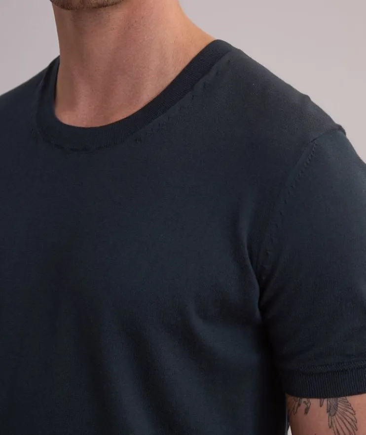 - Simplistic in design, this knit T-shirt is an elevated basic for everyday styling.
