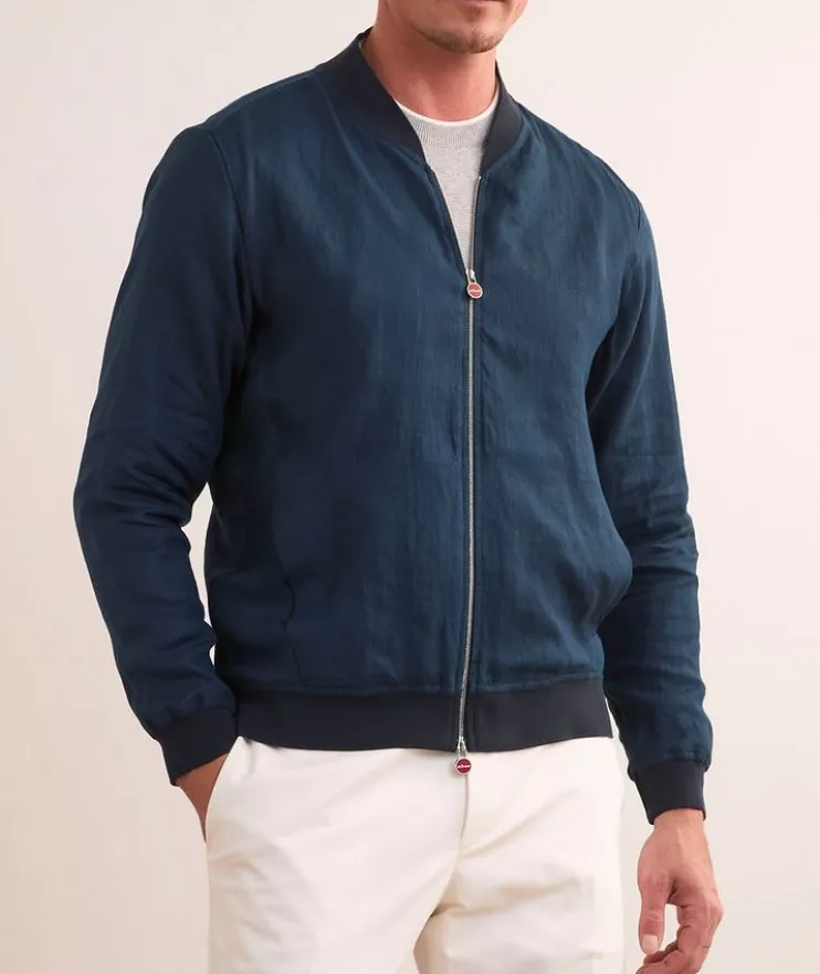 - Crafted with clean lines and a solid design for versatility, this lightweight linen bomber jacket exemplifies relaxed Italian style.
