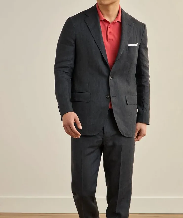 - Expertly crafted in Italy, this timeless single-breasted suit is crafted from pure linen and features a solid design, making it ideal any formal occasion. This garment is unfinished, alterations are required.