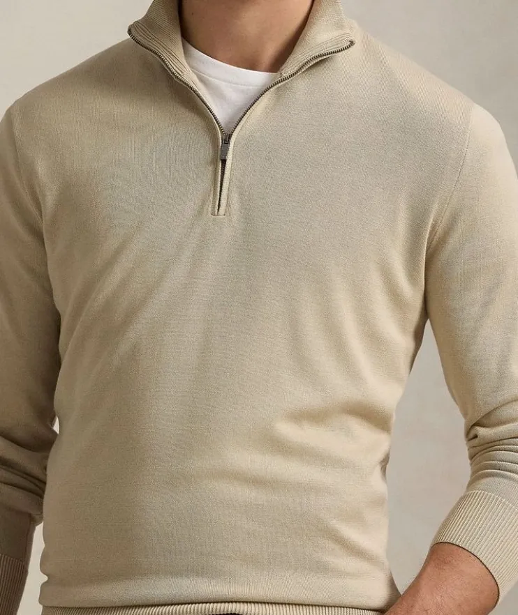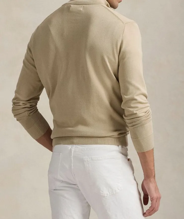 - This lightweight sweater is crafted from soft cotton with ribbed details and a quarter-zip closure for a refined yet laidback feel.