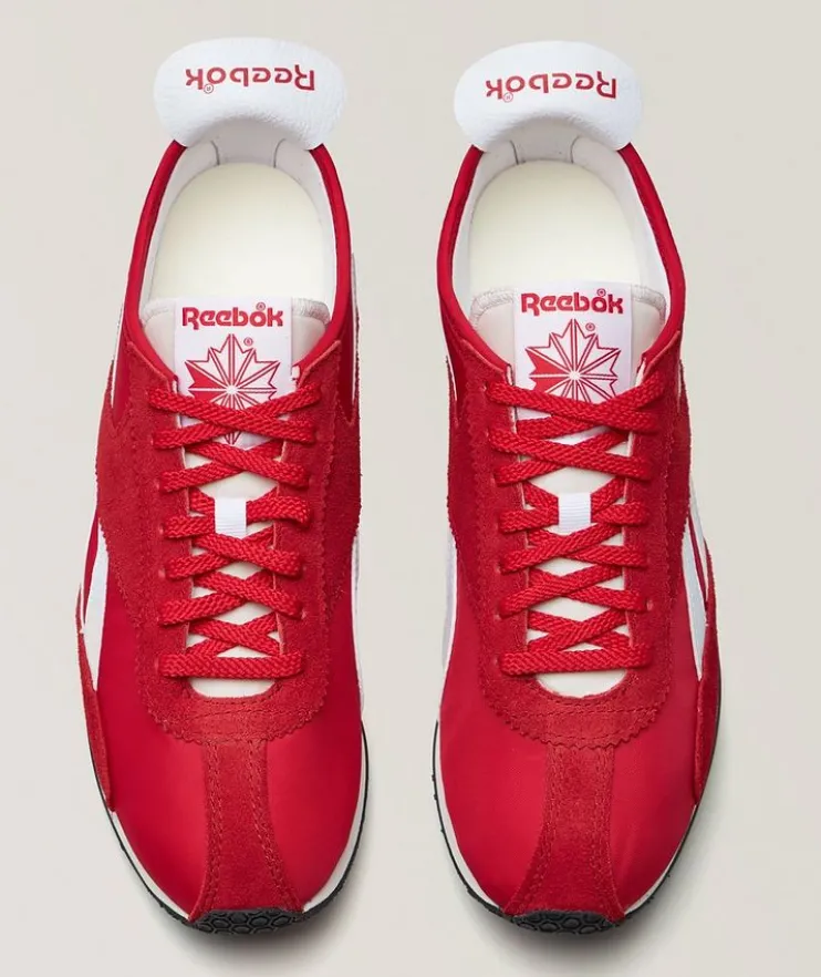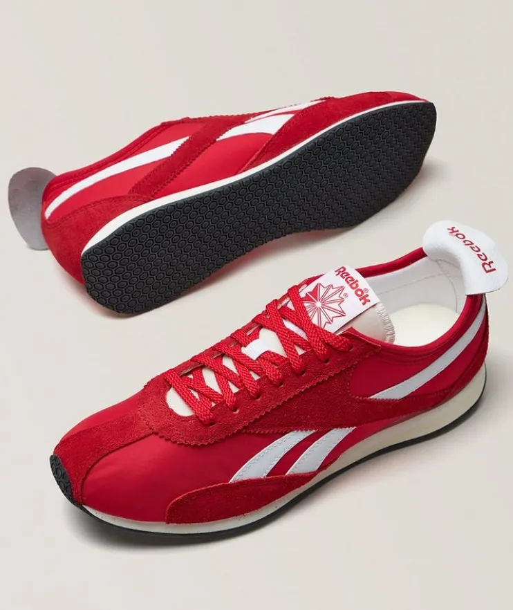 - Inspired by the 1961 track spike design, these sporty shoes feature a sleek low profile silhouette in nylon with contrasting suede overlays and a leather heel tab to combine retro style with modern comfort.