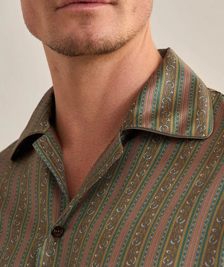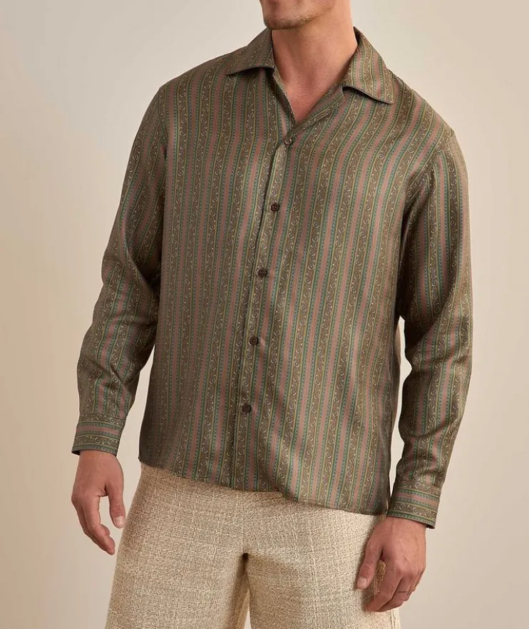 - Crafted from smooth, lightweight silk with a Rayures Fleuries pattern, this contemporary shirt makes for a statement look that can be dressed up or down.