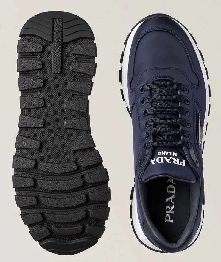 - These classic low-top sneakers from Prada are a pair you can feel good about. Featured in the brand’s sustainable Re-Nylon collection, they were crafted in Italy using recycled nylon gabardine produced by textile yarn company Aquafil.