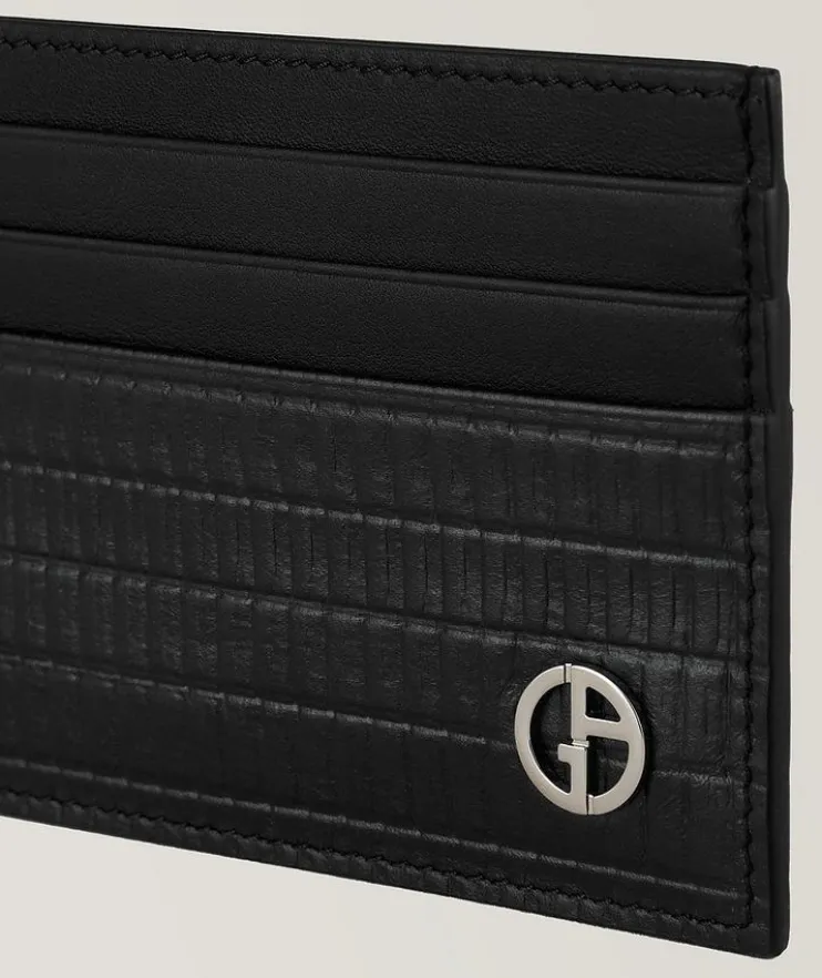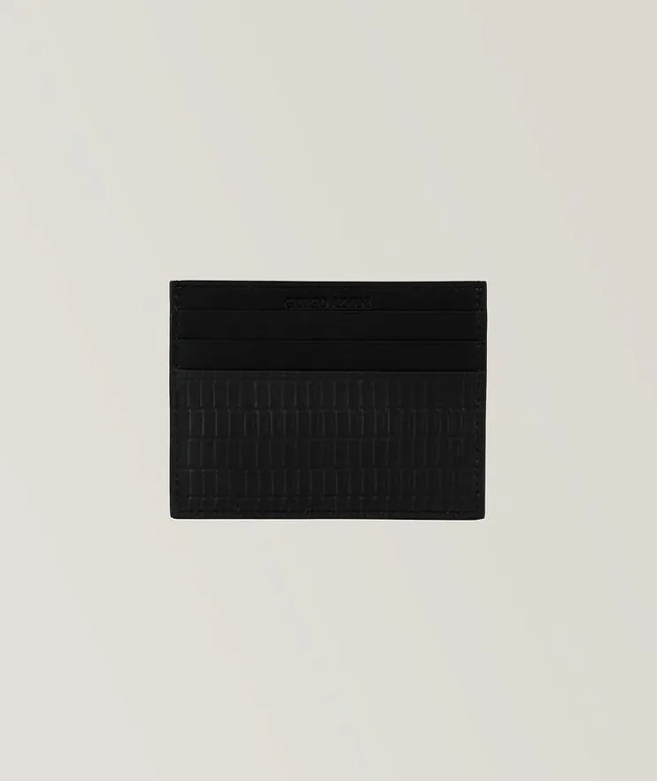 - This clean-lined, minimalist business card holder is made from pliant leather enhanced by a slightly three-dimensional reed print. This compact style features several card slots and a banknote compartment. The slim accessory will effortlessly slip into your back pocket for carrying convenience.