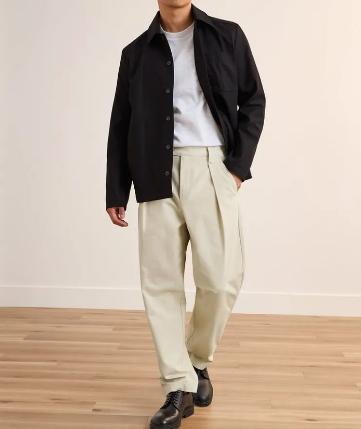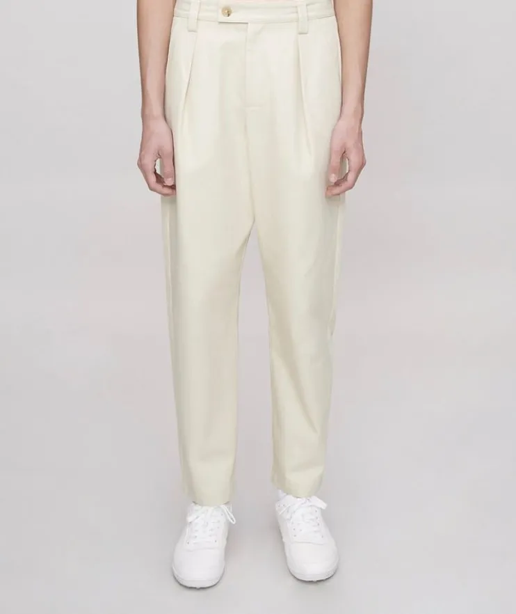 - Classic and comfortable with a herringbone finish, these organic cotton chinos are tailored with single pleats and finished with a modern, wide leg silhouette.