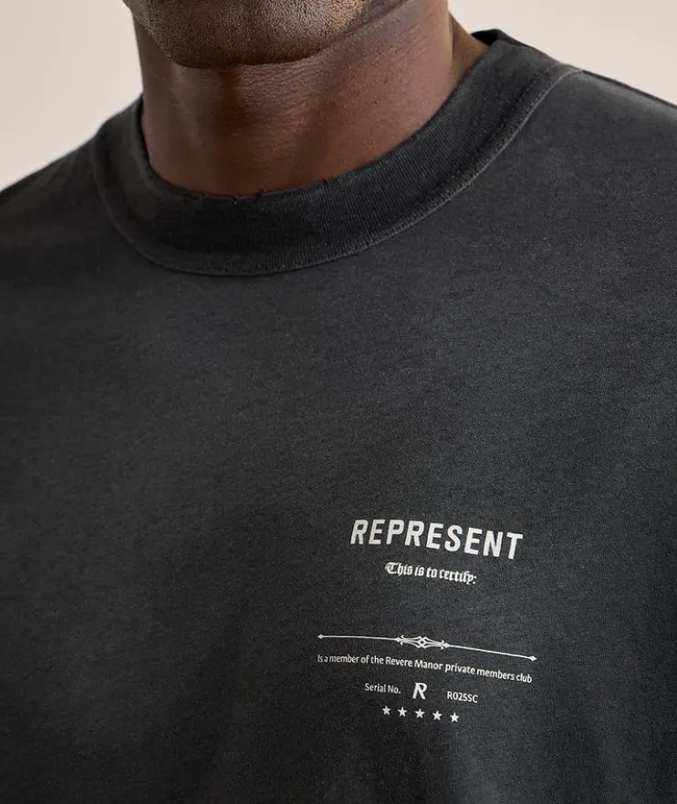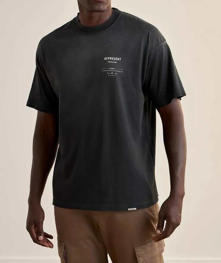 - Crafted in soft jersey from a slub cotton-hemp blend for a worn-in, vintage hand feel, this streetwear staple is elevated with subtle distressing throughout and large distressed artwork to the back.