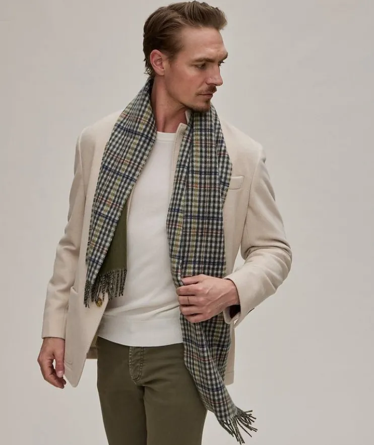 - For the man who enjoys classic cold weather accessories, this scarf had been crafted with the only vertical weaving mill in Scotland, meaning the brand dyes, spins, weaves and finishes the crafting process on-site.