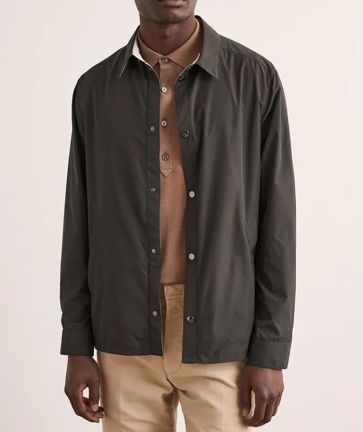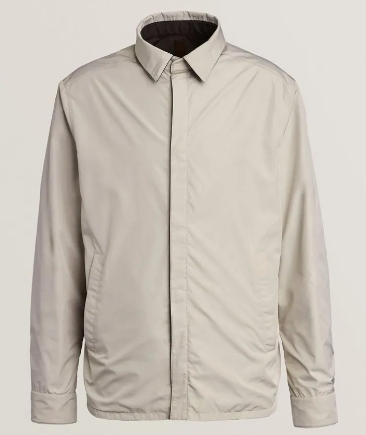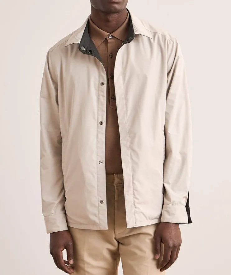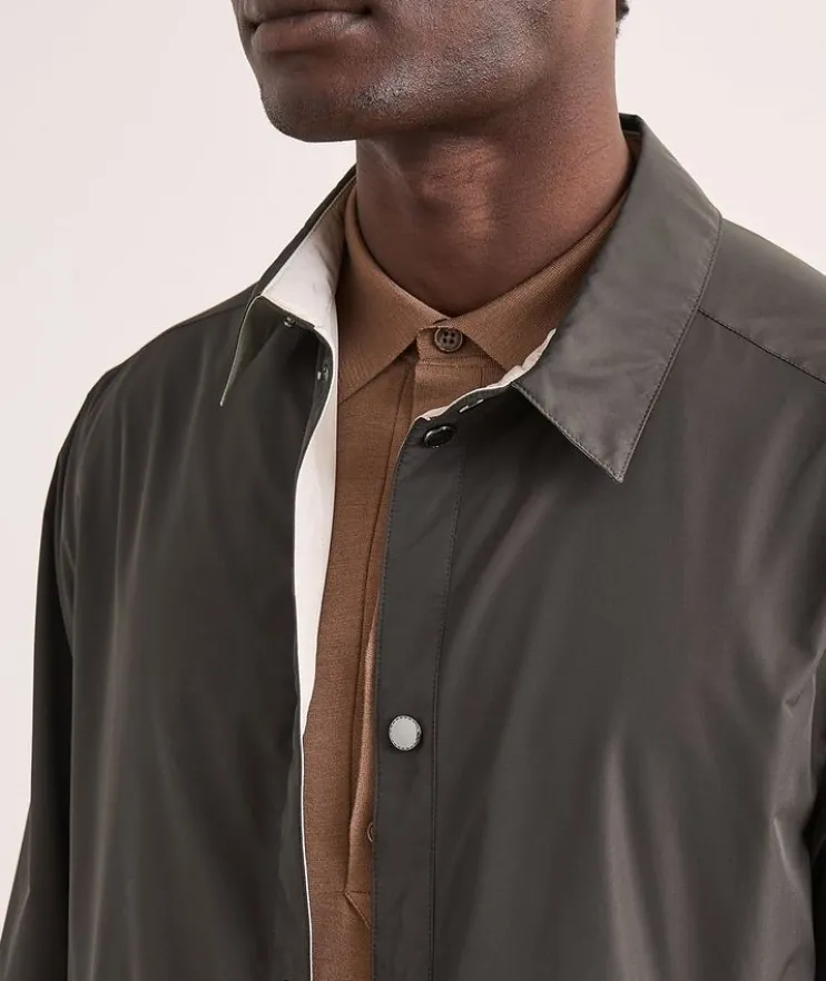- Ideal for facing the mid-seasons with elegance, style and comfort, this reversible jacket is presented in a sporty double-faced design with a shirt-style collar and snap fasteners.