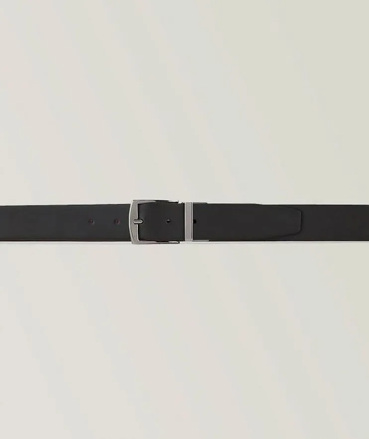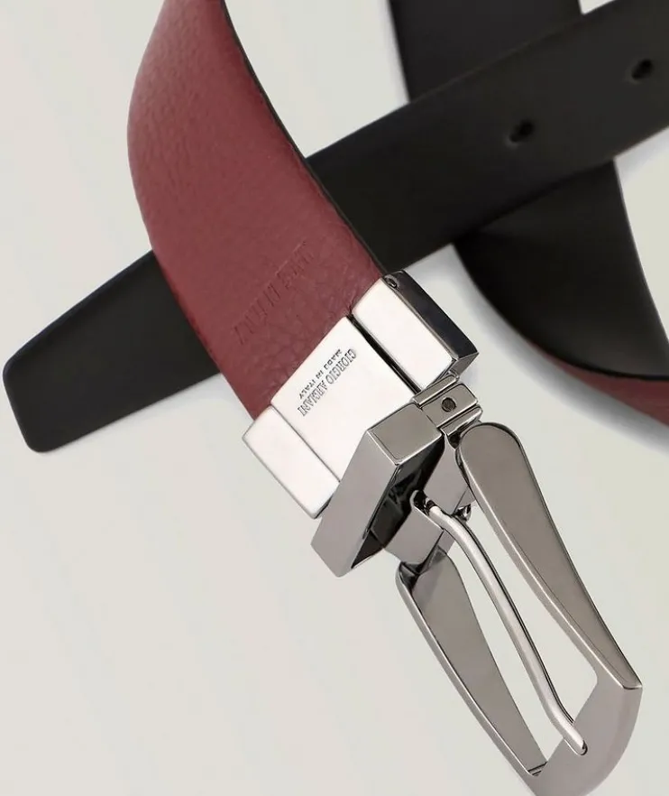 - Premium-quality leather elevates this reversible belt adding texture and dimension to your look. It can be adjusted and fastened using the elegant metal buckle. We recommend selecting one size larger than your trouser waist size to ensure that the buckle comfortably fastens in the middle hole.