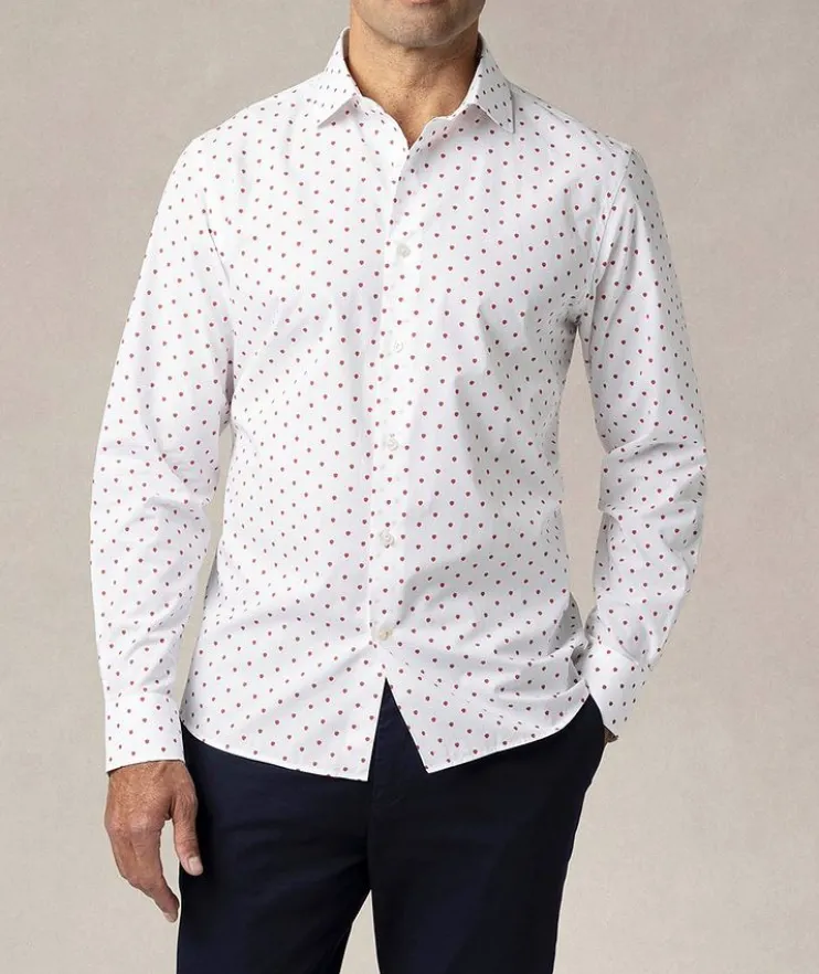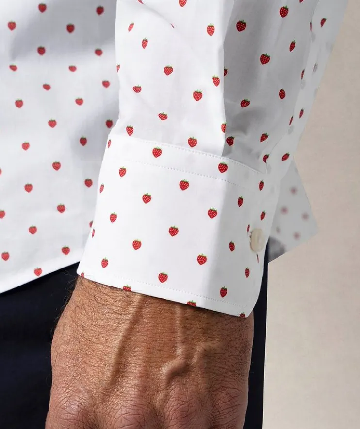 - A seasonal refresh with an allover playful strawberry print, this long sleeve shirt is crafted from fine Italian fabric and designed with a contemporary fit that’s polished yet easy to wear.