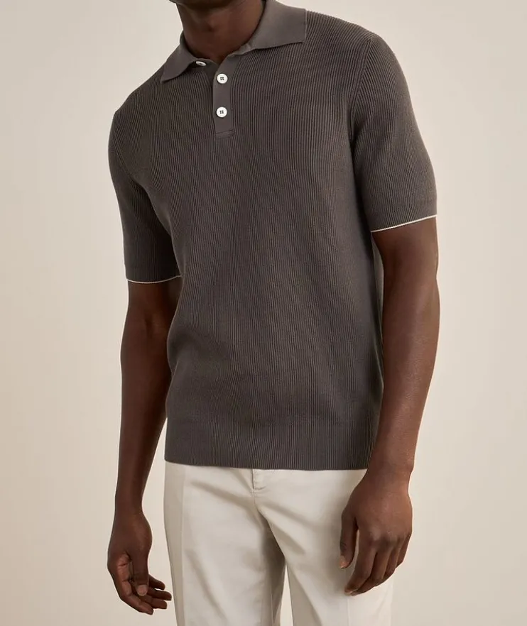 - Fashioned in luxuriously soft cotton with a shirt-style collar, this classic polo evokes timeless appeal and sophisticated branding with its lightweight texture and tipping at the cuffs.