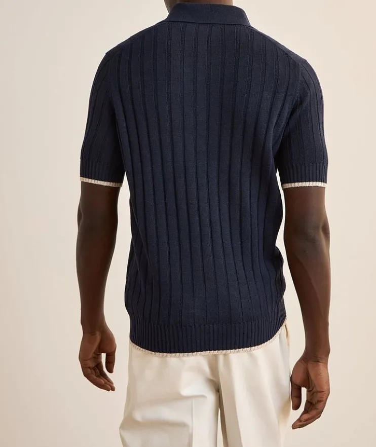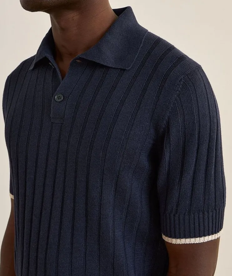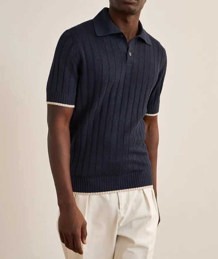 - Fashioned in refined, natural linen and cotton for a lightweight feel, this polo is finished in a wide ribbed stitch, lending texture and character to the sporty silhouette.