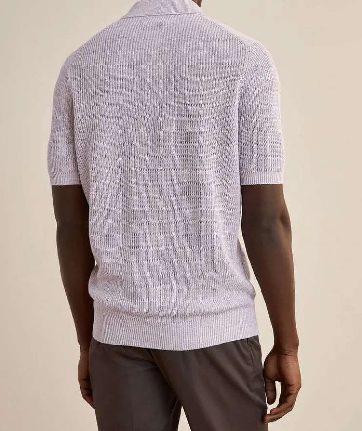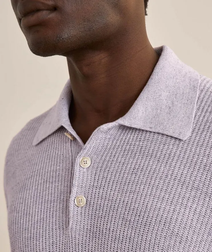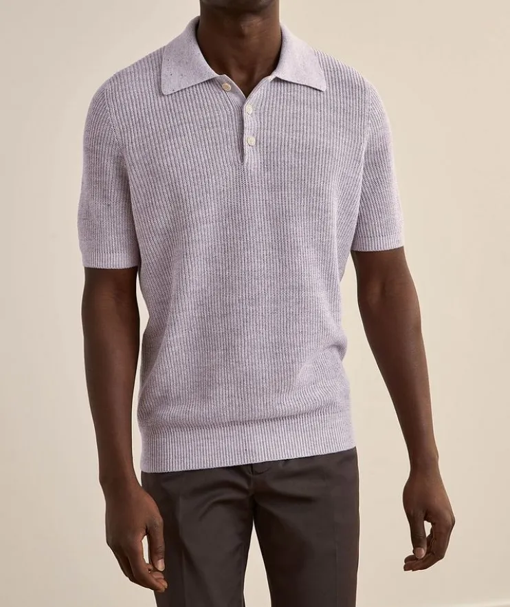 - Fashioned in refined, natural yarns for a casual feel, this elevated polo boasts a classic English rib knit finish, lending texture and allure to the sporty silhouette.