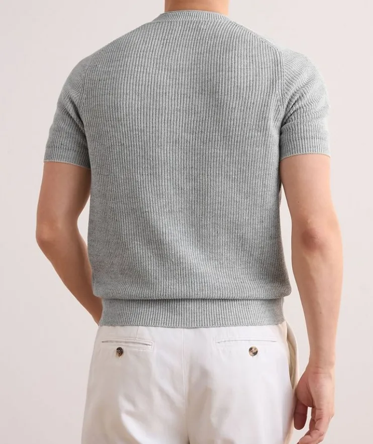 - Fashioned in refined, natural yarns for a casual feel, this elevated polo boasts a classic English rib knit texture, lending traditional allure to the sporty silhouette.