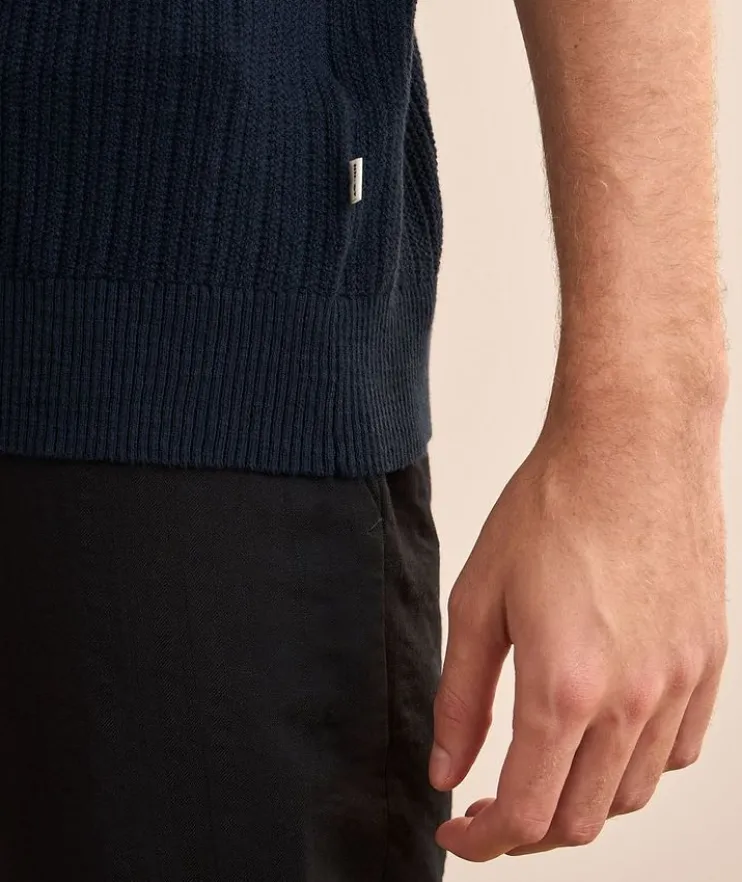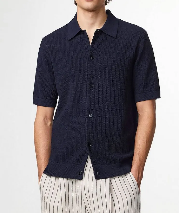 - The perfect layering piece for work or weekend, this organic cotton polo is designed with a classic collar, button front closure and textured rib knit finish.