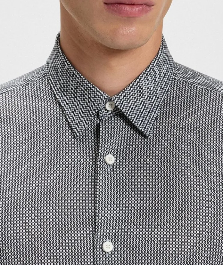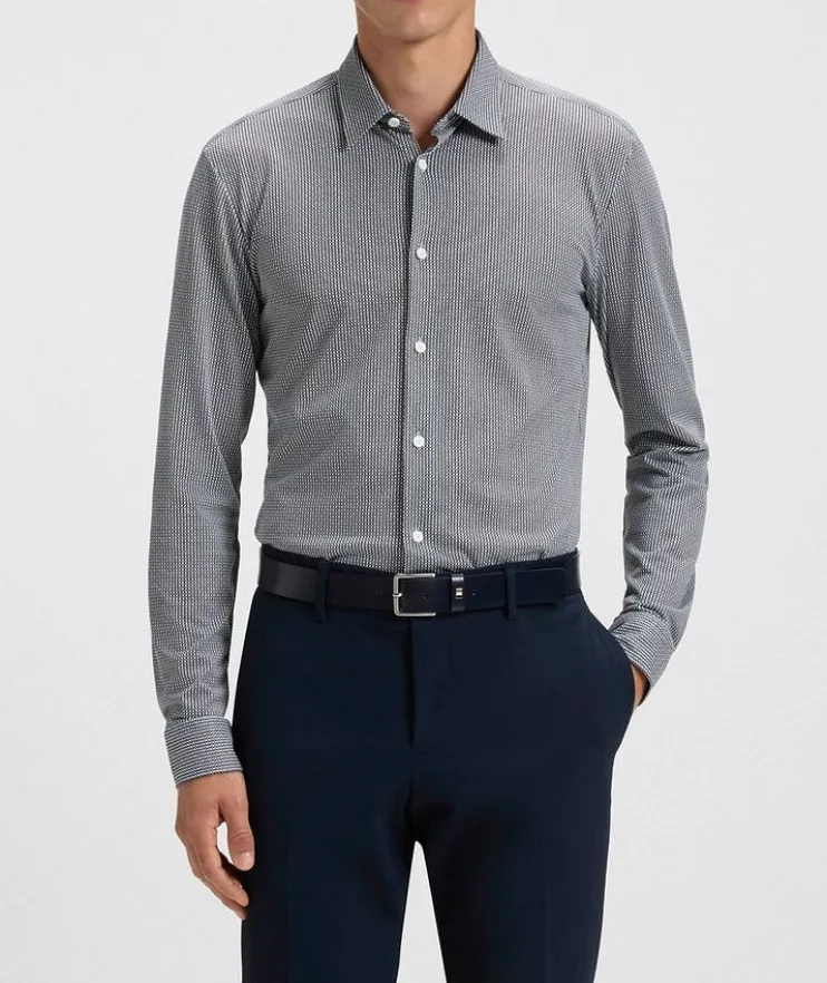 - Constructed in a slim fit with a subtle printed pattern and blended with stretch and cotton, this versatile shirt is essential for everyday comfort.