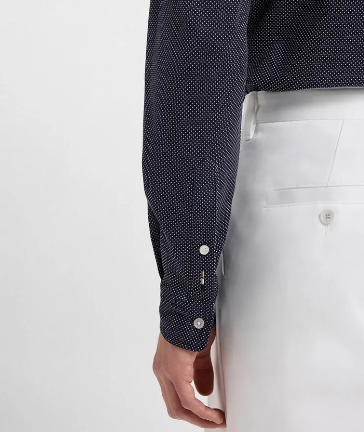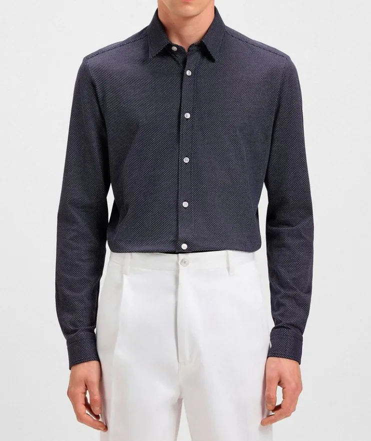 - This versatile shirt constructed in a streamlined fit from luxuriously soft cotton with a dobby-woven structure.