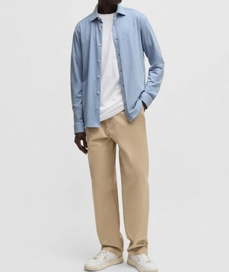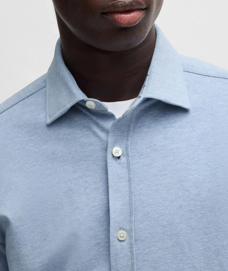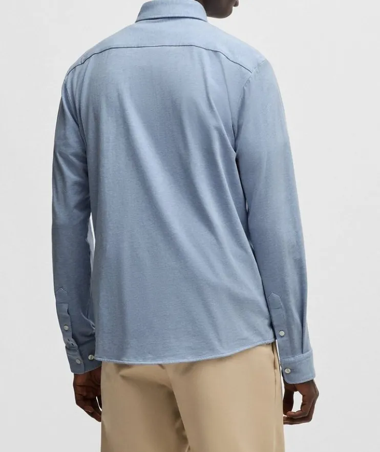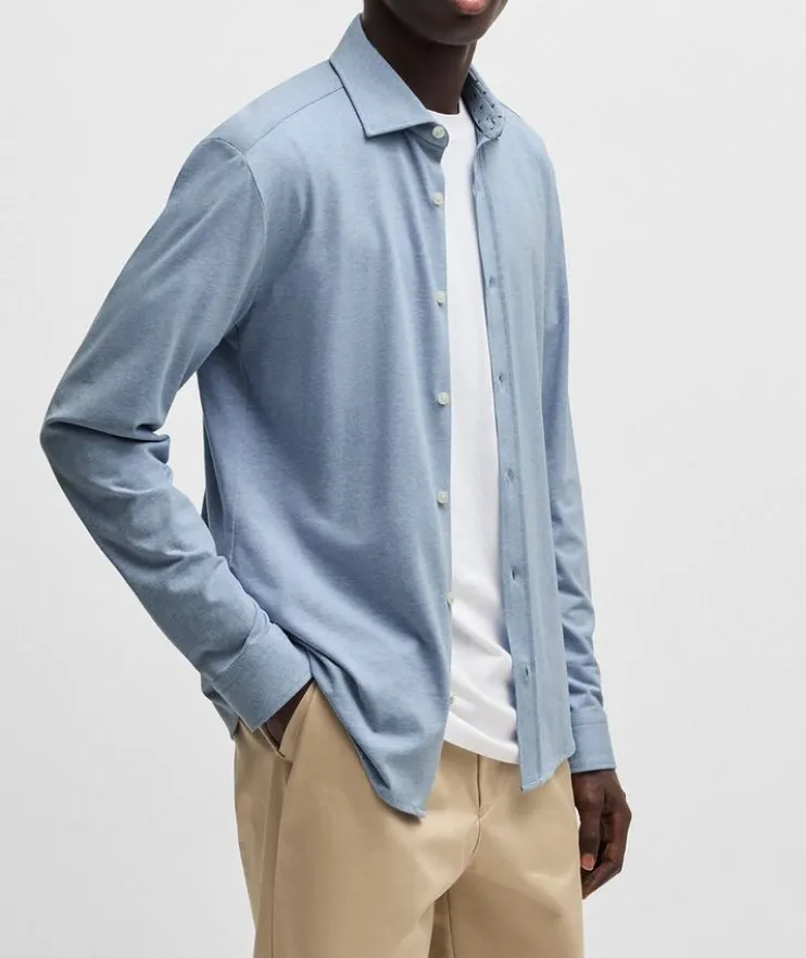 - A casual shirt crafted in stretch-cotton jersey by BOSS Menswear. This long-sleeved piece is tailored to a modern slim fit.