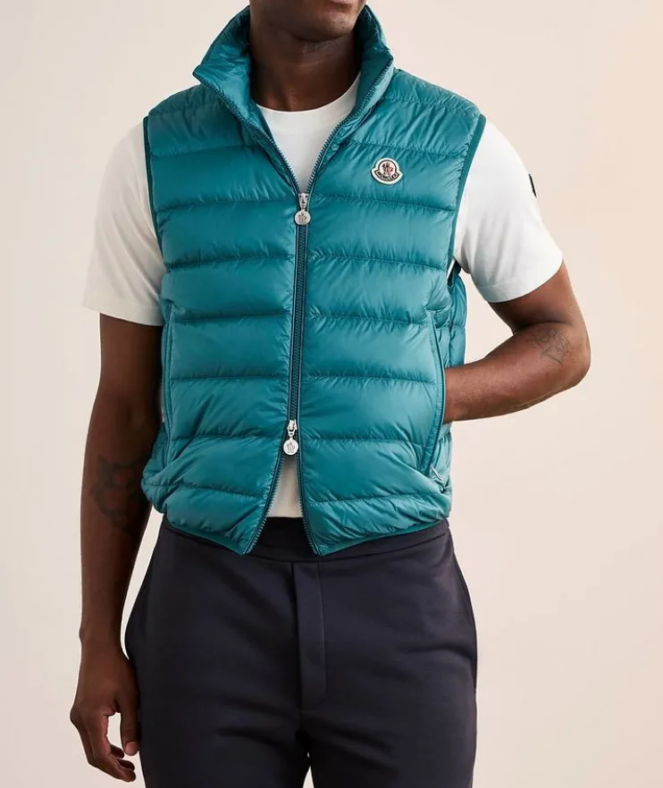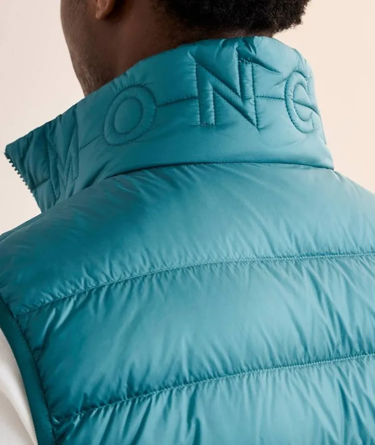 - This contemporary puffer vest is made from lightweight nylon with subtle logo detailing at the collar. Featuring a warm down fill, this vest is practical layering piece that moves from the city to the outdoors with ease.