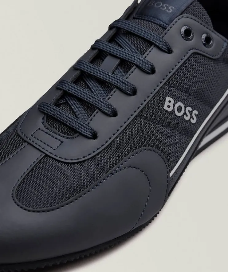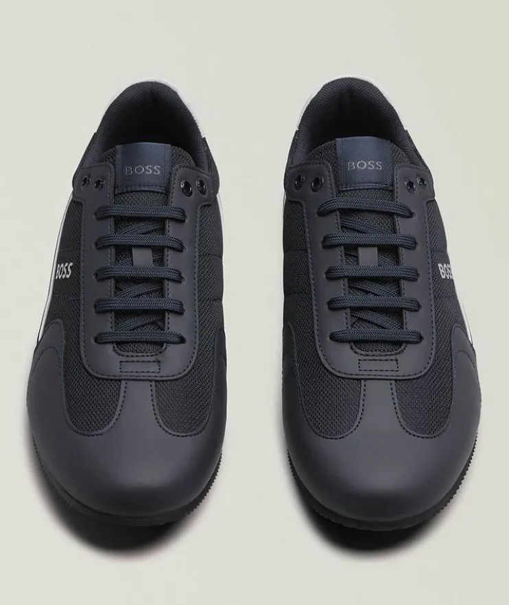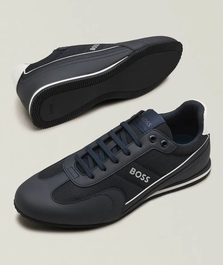 - Featuring a streamlined silhouette, these sleek sneakers are designed with mesh paneling and subtle logo details for a contemporary look with athletic undertones.