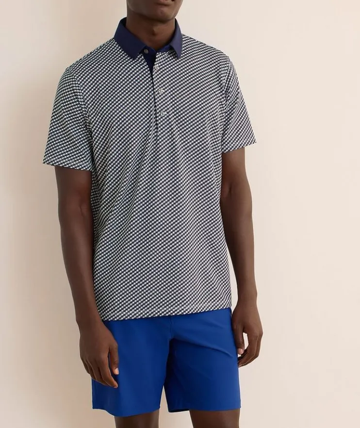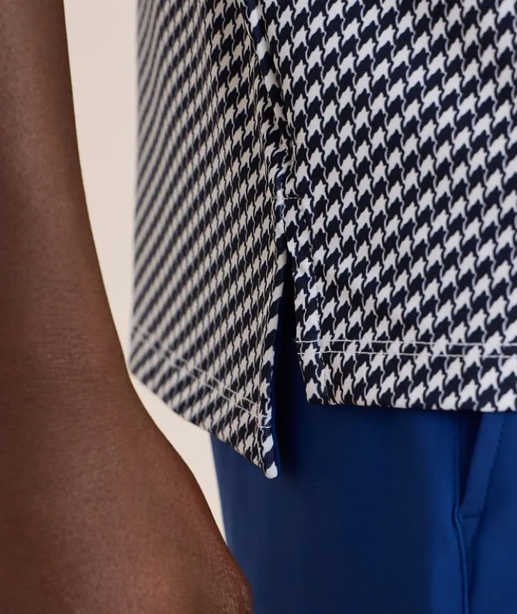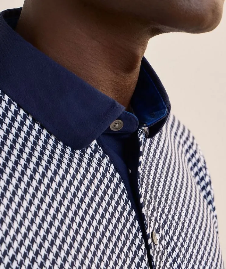 - This sporty polo is made from breathable, quick-drying, moisture-wicking fabric with four-way stretch, ensuring freedom of movement and all-day comfort whether your on or off the golf course. Finished with a classic houndstooth print for a refined and elevated look.