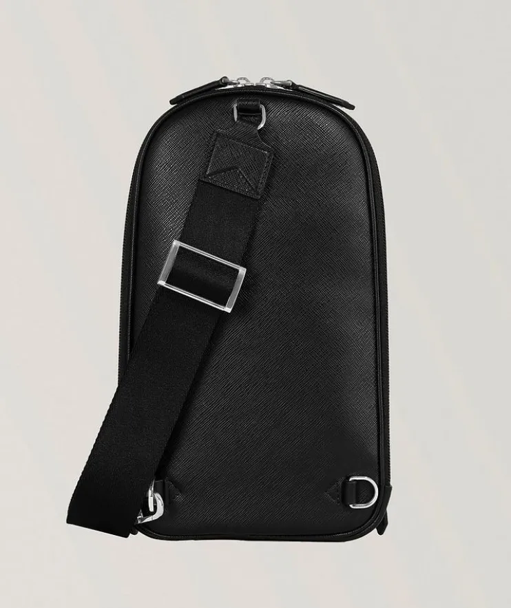 - This sling bag is crafted in Italy from Saffiano-embossed leather in a modern silhouette with secure zippers. A spacious main compartment boasts additional pockets to keep your valuables safe and organized.