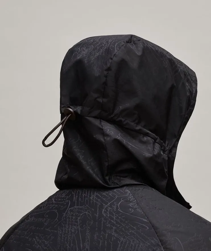 - Berluti’s deep roots of savoir-faire are emphasized in their scritto pieces. This jacket features the signature classic allover script, for a truly distinguished Berluti style. Crafted from technical fabric, the down fill adds extra comfort. Standout from the rest with a layered design with optimum warmth.