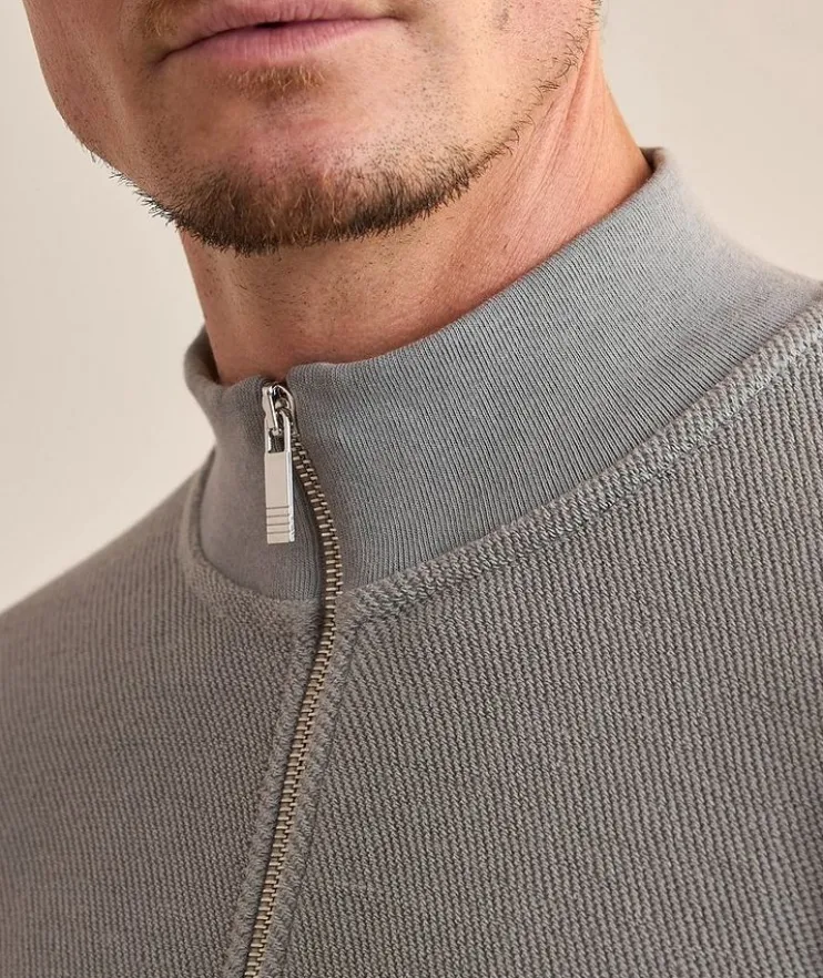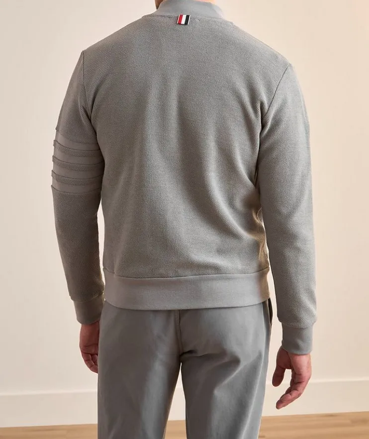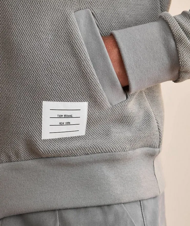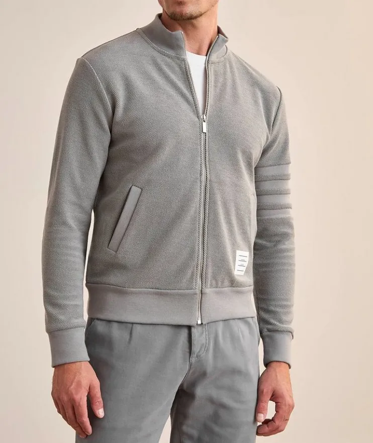 - A comfortable and contemporary cardigan featuring a zippered closure with the brand’s iconic 4-bar detailing. Crafted from breathable cotton with a reverse loopback texture and finished with a name tag applique at the hem.