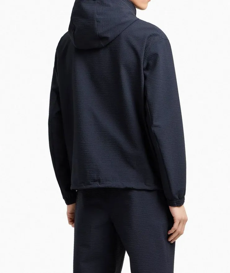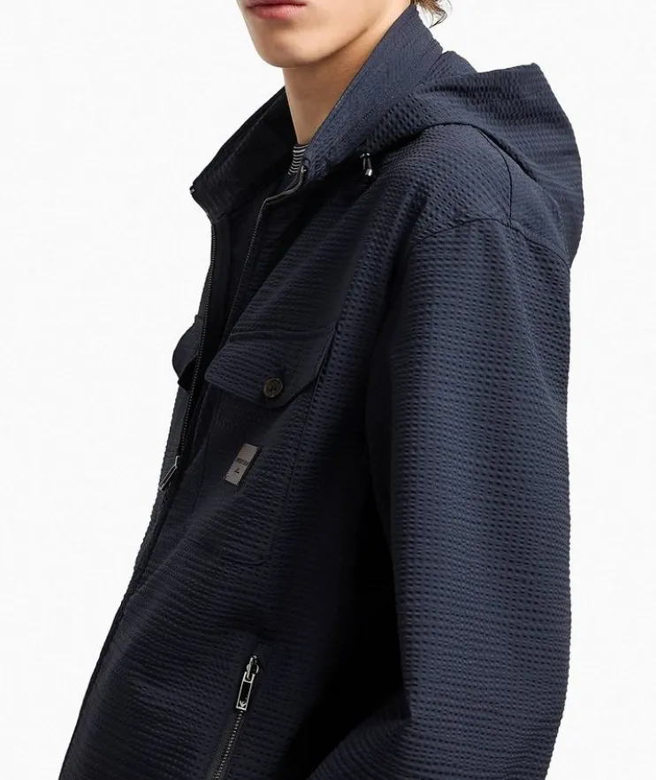 - A modern design that blends with the exclusive seersucker fabric, this lightweight blouson with two-way zip front features multiple pockets and a practical zip-out stowaway hood in the collar.