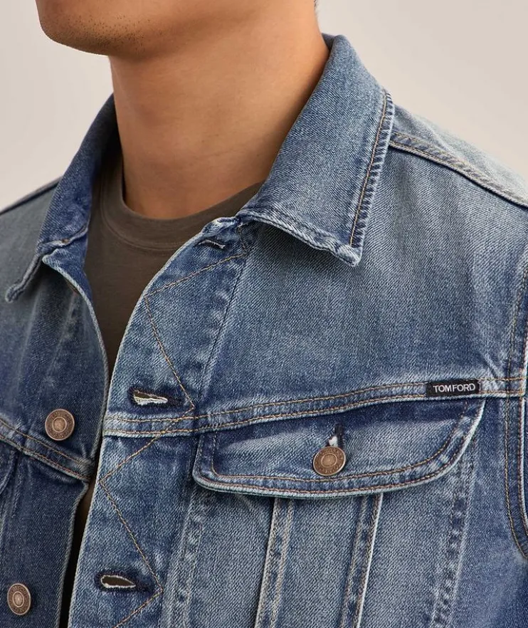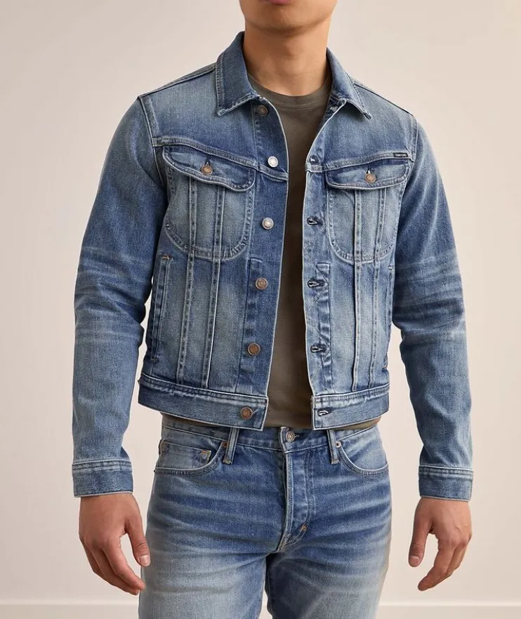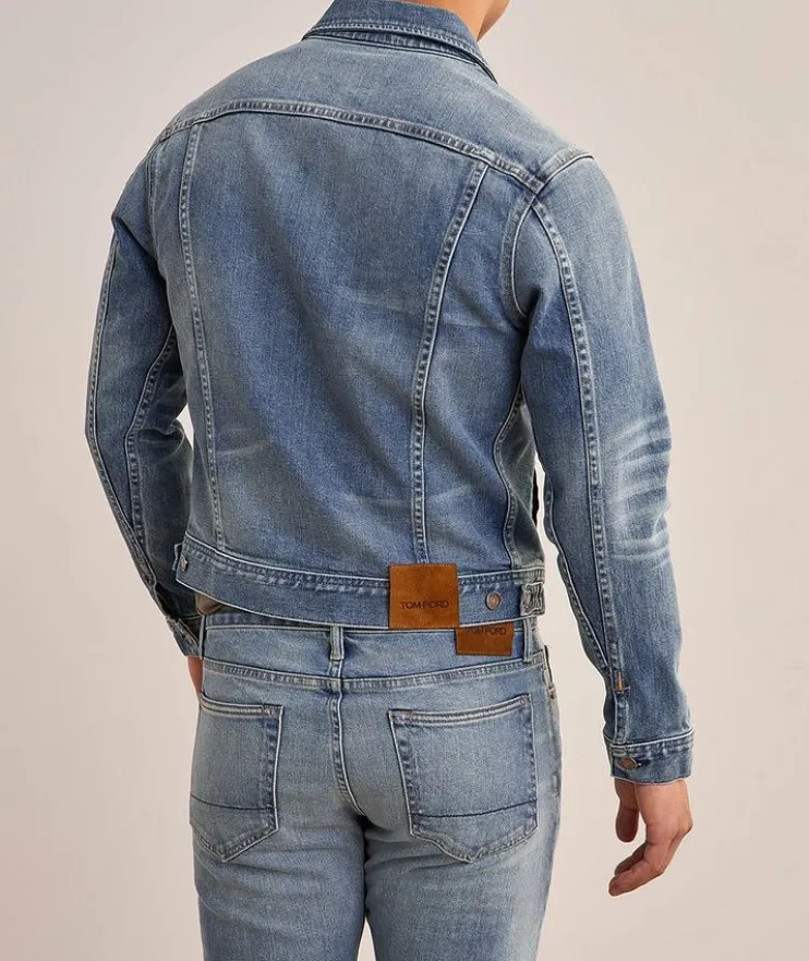 - This denim jacket has been crafted in a slim fit, designed to sit close against the body.