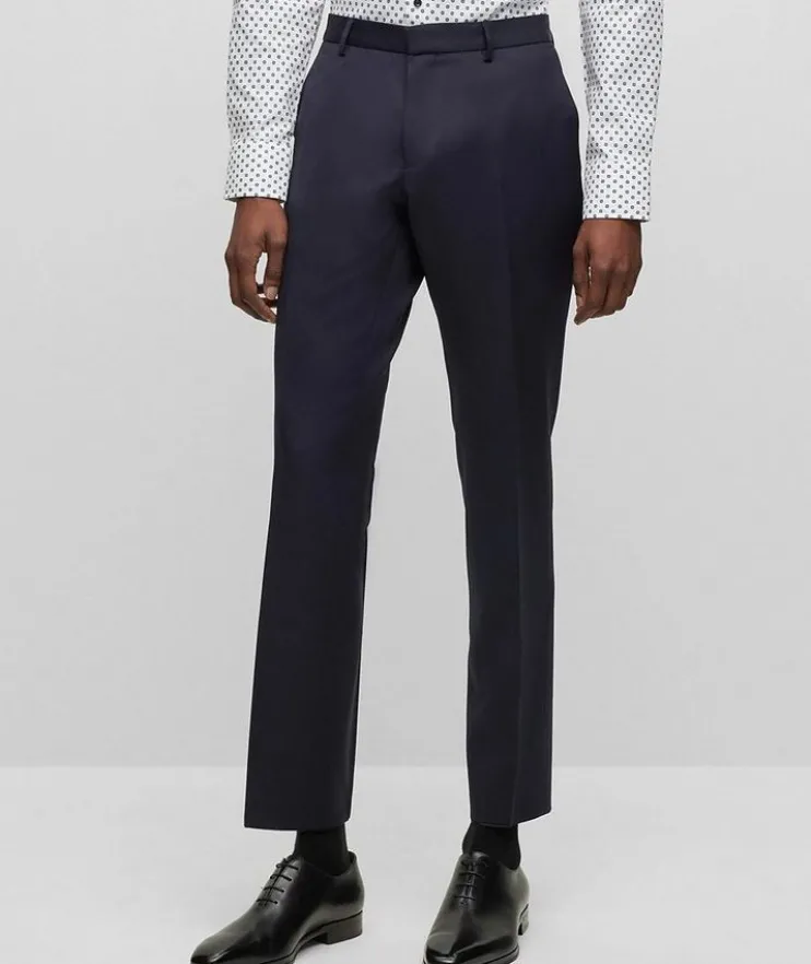 - Make an entrance front and center, like a true boss, with these versatile formal dress pants from BOSS. Crafted from a pure virgin wool with a serge weave, these dress pants are cut in the brand’s extra-slim fit for a tailored finish. Complete the look with a BOSS shirt and accessories.