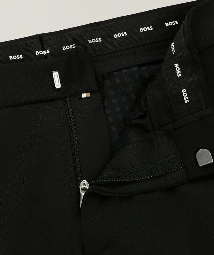 - Make an entrance front and center, like a true boss, with these versatile formal dress pants from BOSS. Crafted from pure virgin wool with a serge weave, these dress pants are cut in the brand’s extra-slim fit for a tailored finish. Complete the look with a BOSS shirt and accessories.