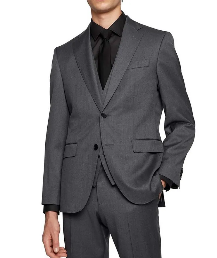 - This sport jacket by BOSS is a versatile piece that will instantly elevate any tailored ensemble. It has been expertly crafted in virgin-wool serge and lined with logo-print material. This single-breasted jacket is detailed with notch lapels, flap pockets and a signature-stripe hanger loop inside the collar. The classic blazer can be paired with a variety of suiting separates.