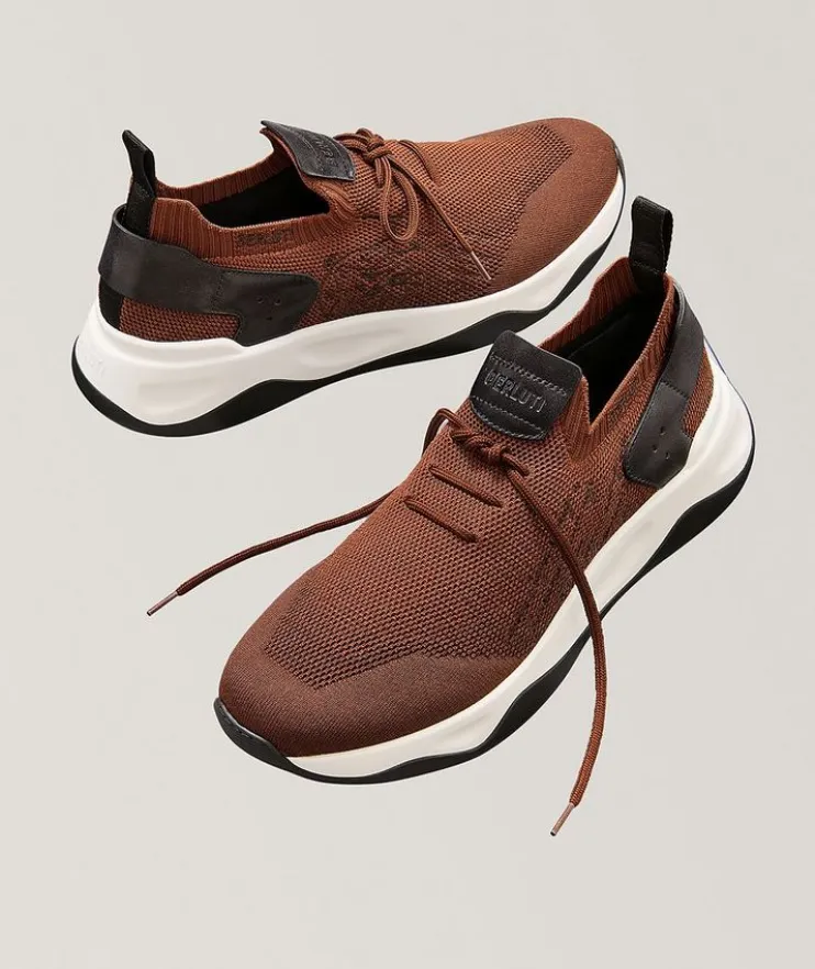 - This signature style features a technical knit upper with decorative lacing, Vitello leather trim and a gripping rubber sole. To take care of the knit, use a wet sponge. With the outsole, use soap and apply it with gentle circular moves.