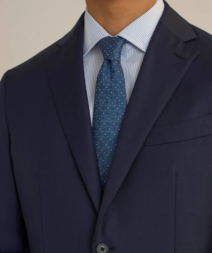 - This suit has been crafted in a regular fit, designed to sit naturally against the body.